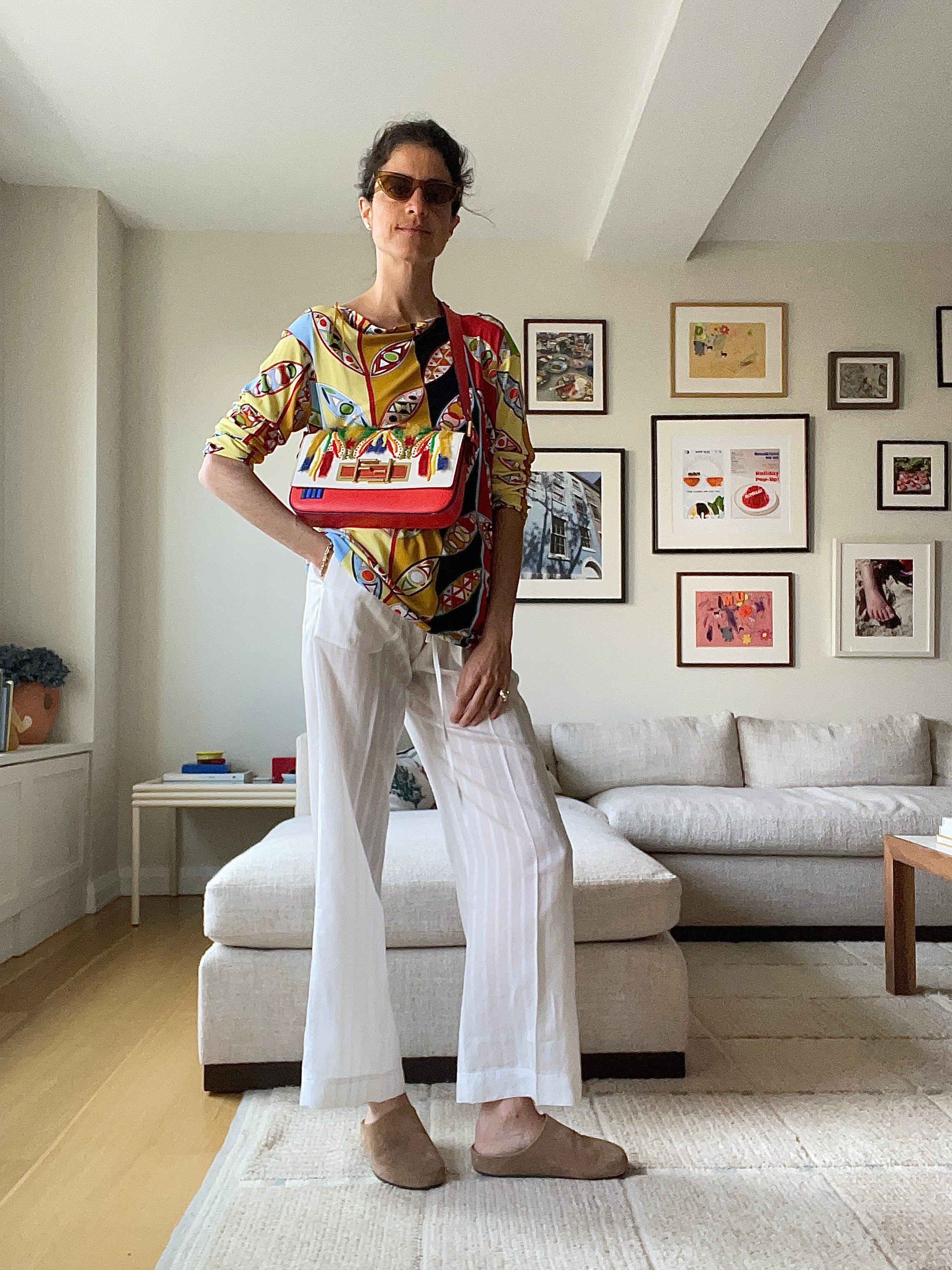 Pucci top, Jigsaw clogs, Oliver Peoples sunglasses from TRR