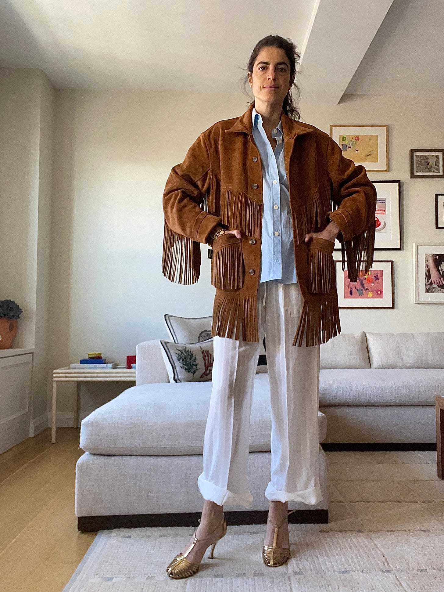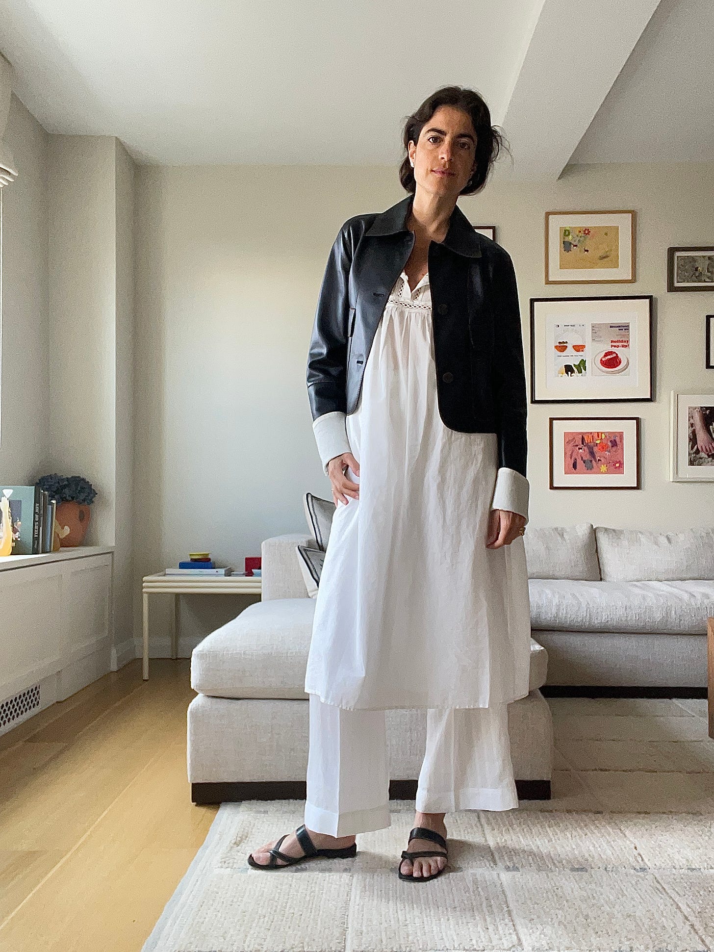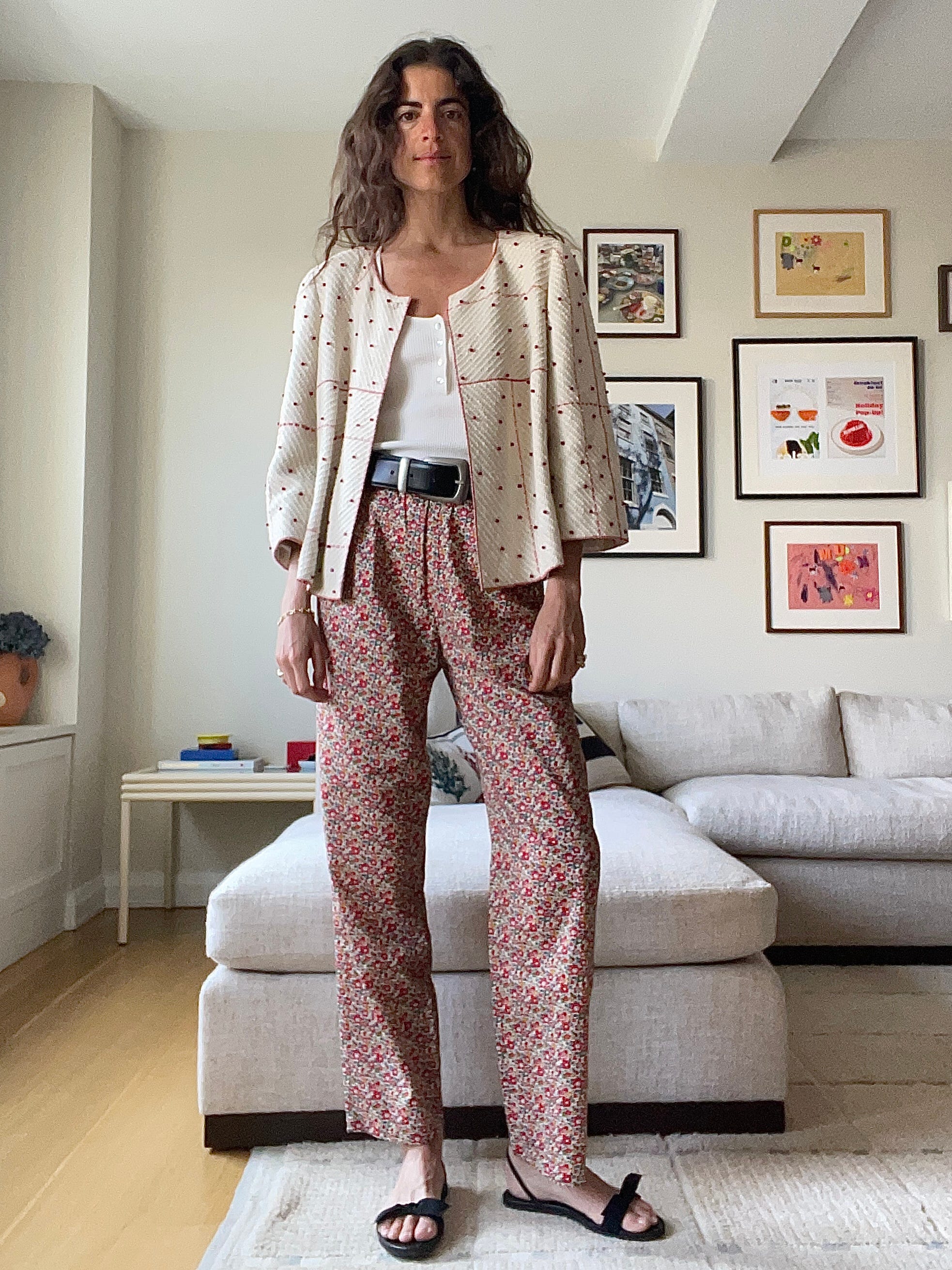 The pants are from an old pj set, the jacket is one of the best Real Real finds I’ve ever made, the tank is Live the Process and the belt is Khaite