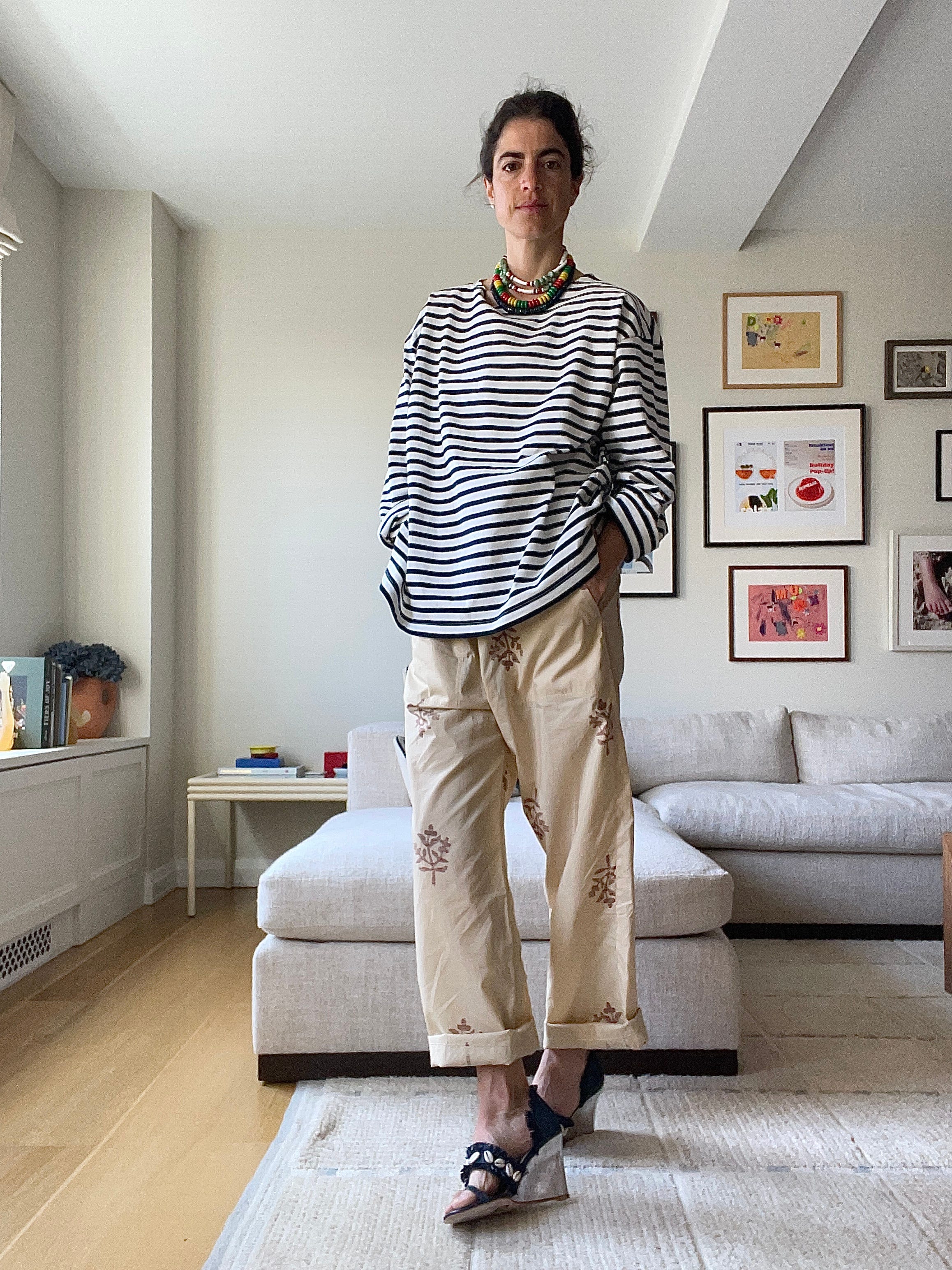 Cotton voile pajama-style pants are to a city in the summer what beach pants are to the beach and sweatpants are to the winter. What I mean by this is that they’re a comfortable, easy, no-brainer solution to the question of what to wear when you feel…any which way you feel: like hot shit, lukewarm caca or frozen feces.