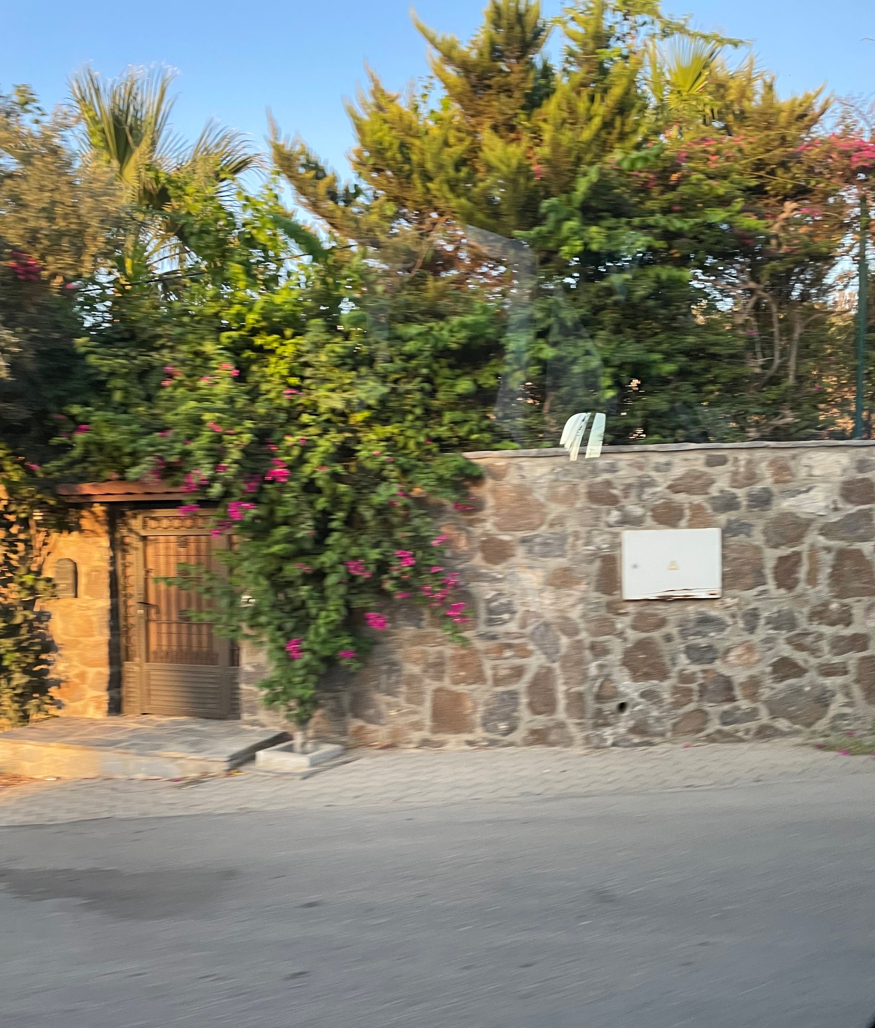 In the car, we passed boundaries. Short stone walls built like fortress gates with small wooden doors peeking out as passageways and greenery spilling out from over the gates.