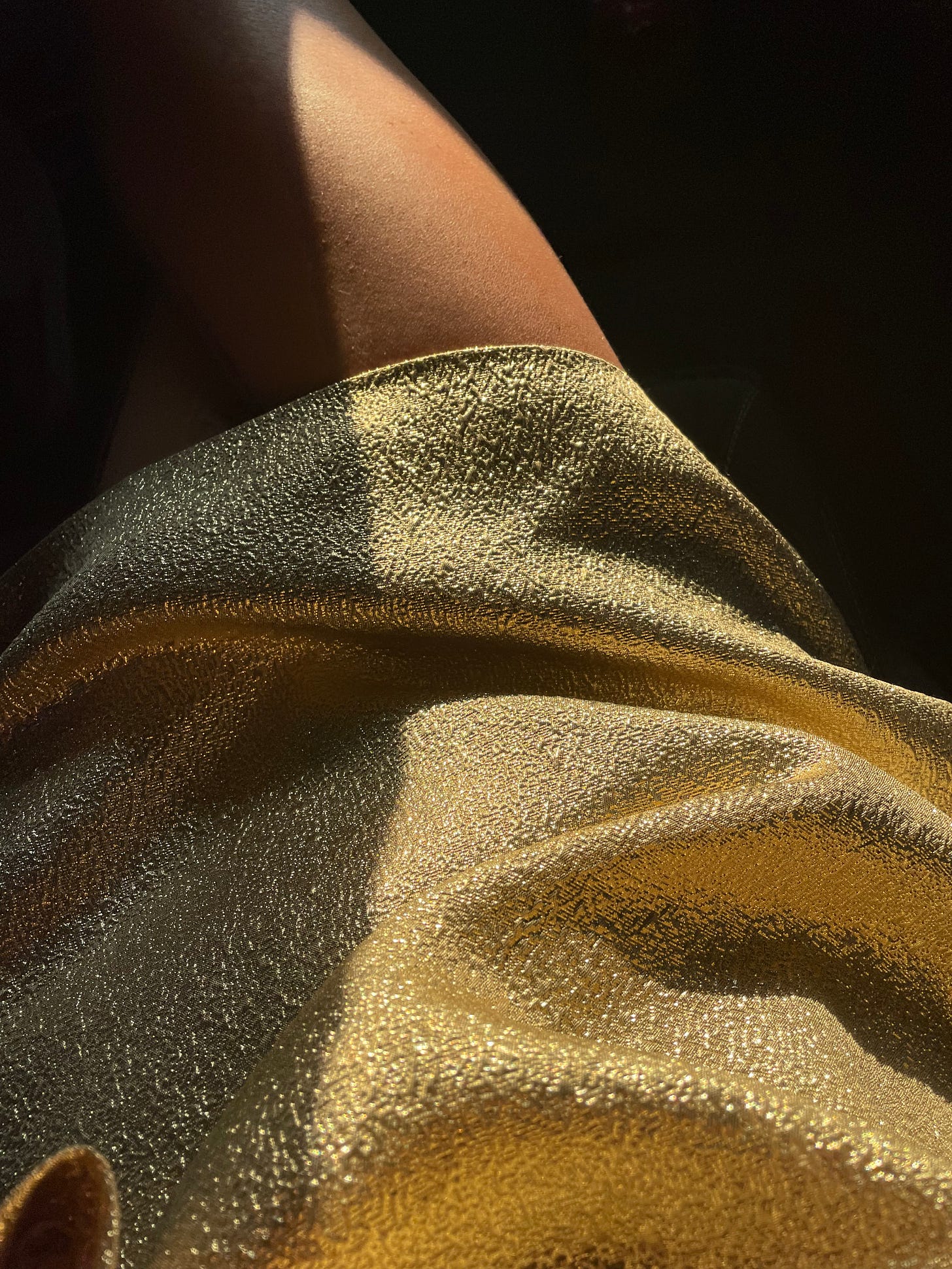 A family of three -- one woman, two boys -- passes by, moving down the street in bathing suits, towels wrapped like coverups over their bottom halves as they walk, backs turned away from the dusk towards night. I wore a gold dress that caught the gold light and tried maniacally to capture the scene. As if seizing the image would make it stay, well knowing nothing gold ever does.