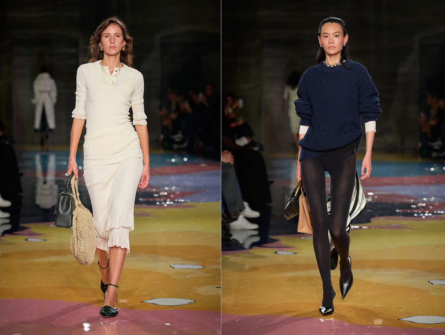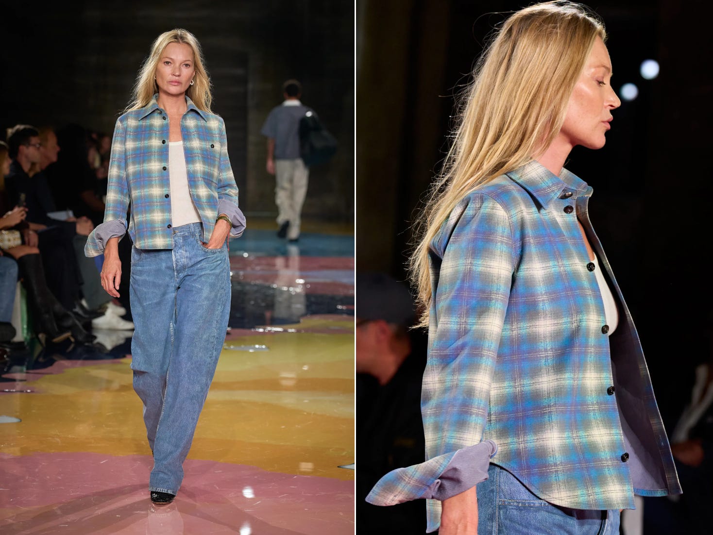 Everyone’s talking about Bottega Veneta — mostly about Kate Moss, who walked the runway in a pair of baggy jeans and a plaid button-down. I’ve been more consumed by the white cotton henleys and simple, layered skirts and dresses interspersed throughout the collection. But it’s impressive that those opening looks were rendered in leather, not denim and flannel. And the shirt, in particular, took (per Vogue Runway’s Nicole Phelps), “12 layers of prints to achieve the depth of color Blazy was after.”