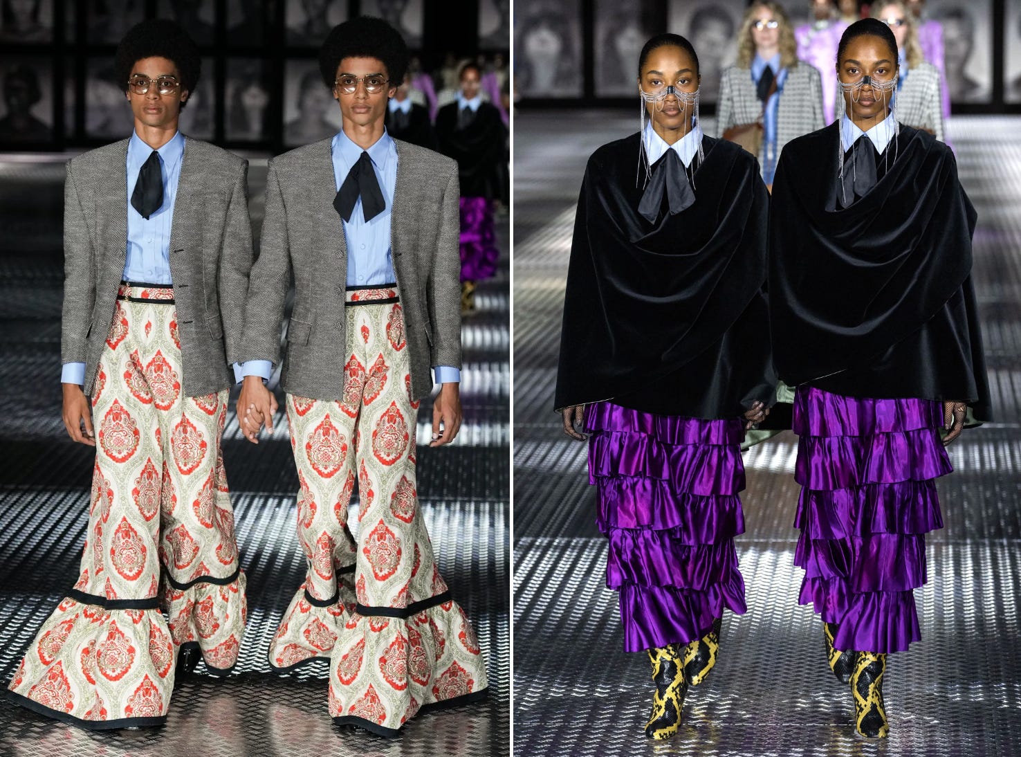 In Milan, Gucci’s Alessandro Michele staged a show of 68 looks with 136 models; each look was duplicated and worn by a set of twins. His show notes paid tribute to his mother, who it turns out was an identical twin herself. “I am a son of two mothers,” he wrote.