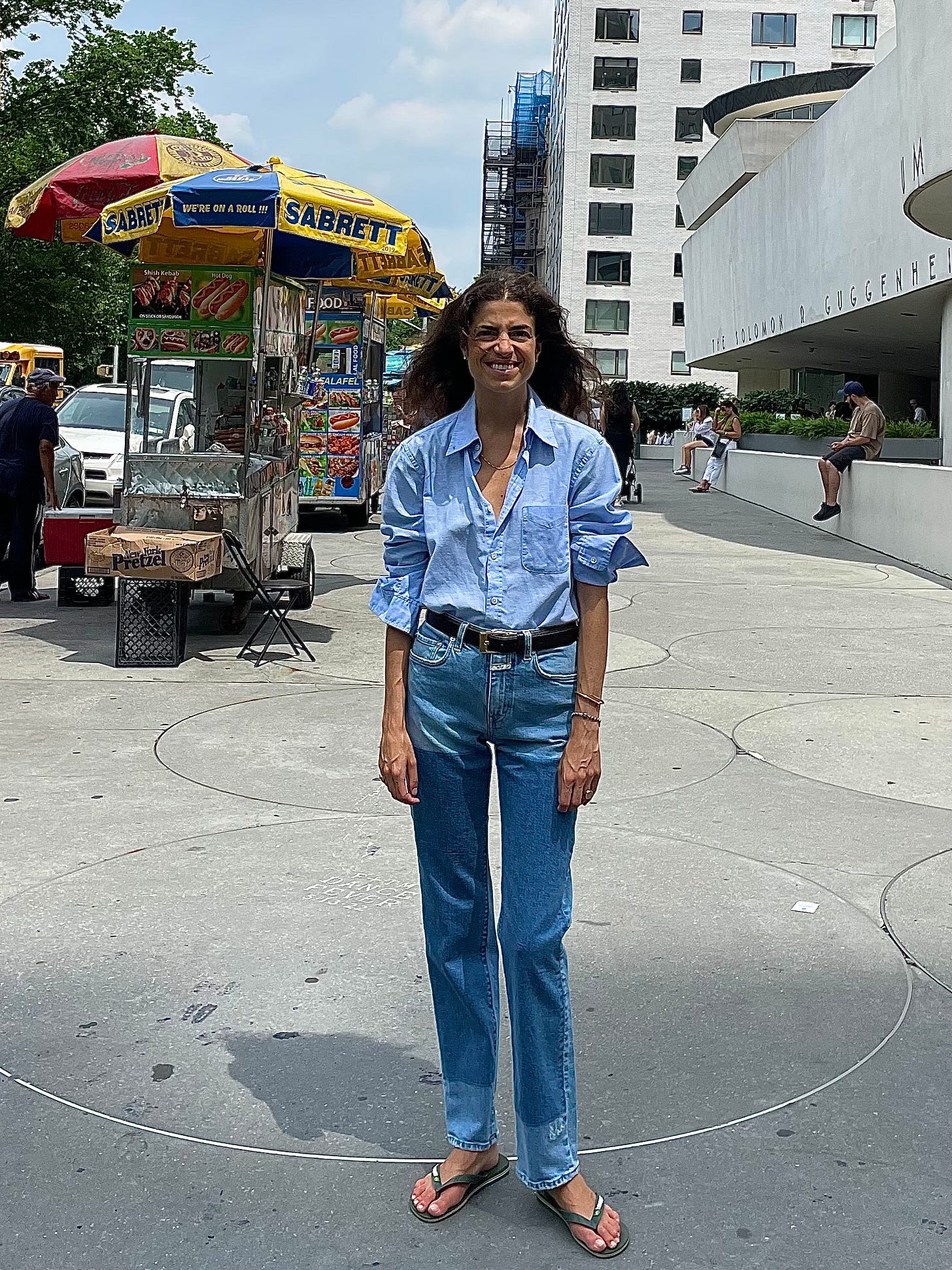 Rubber flip flops, to be clear. Not leather or with a wood sole. They’re more inconsequential that way, even accidental-semming and perhaps this is what makes wearing them seem so luxurious, or free.