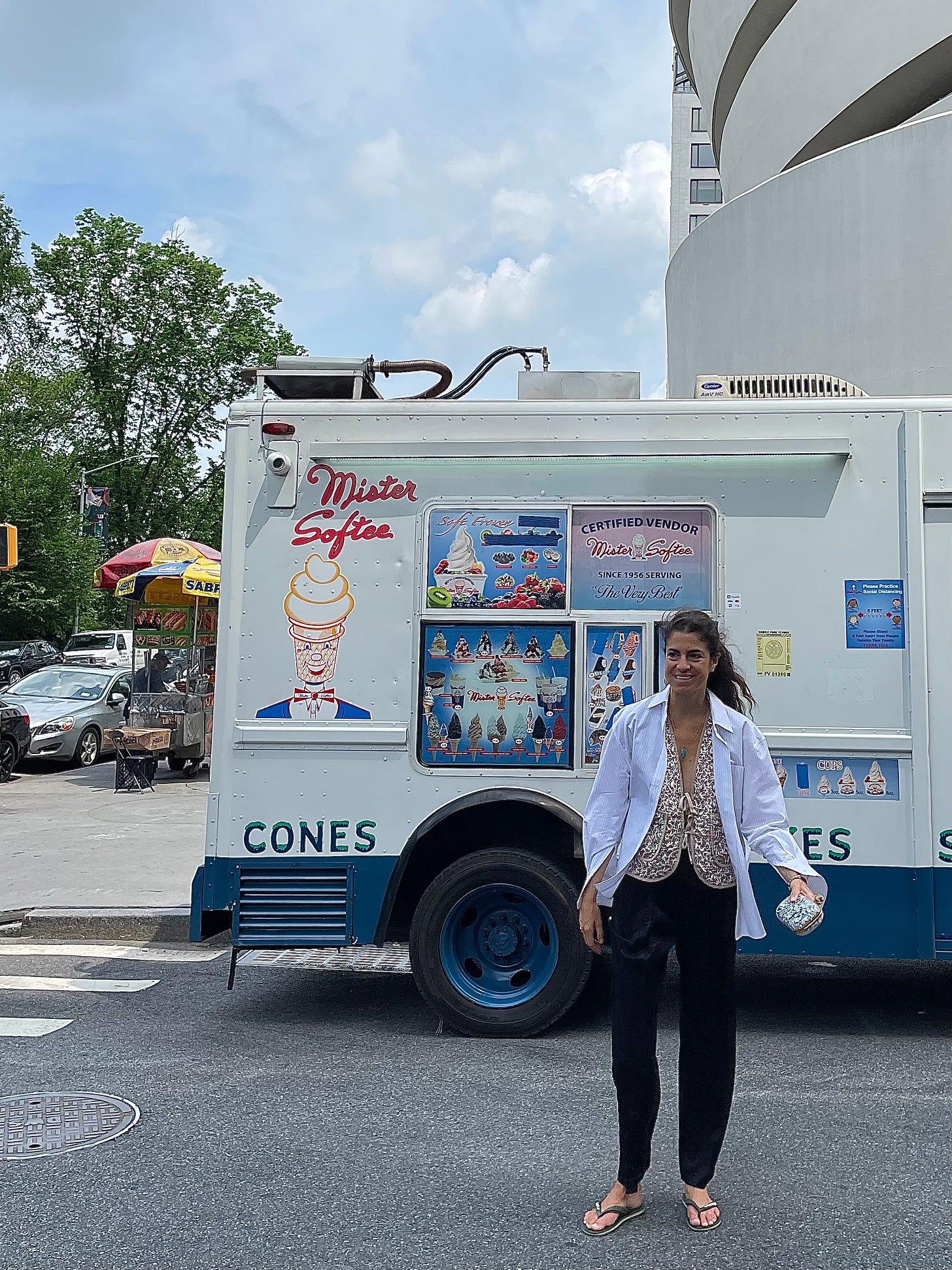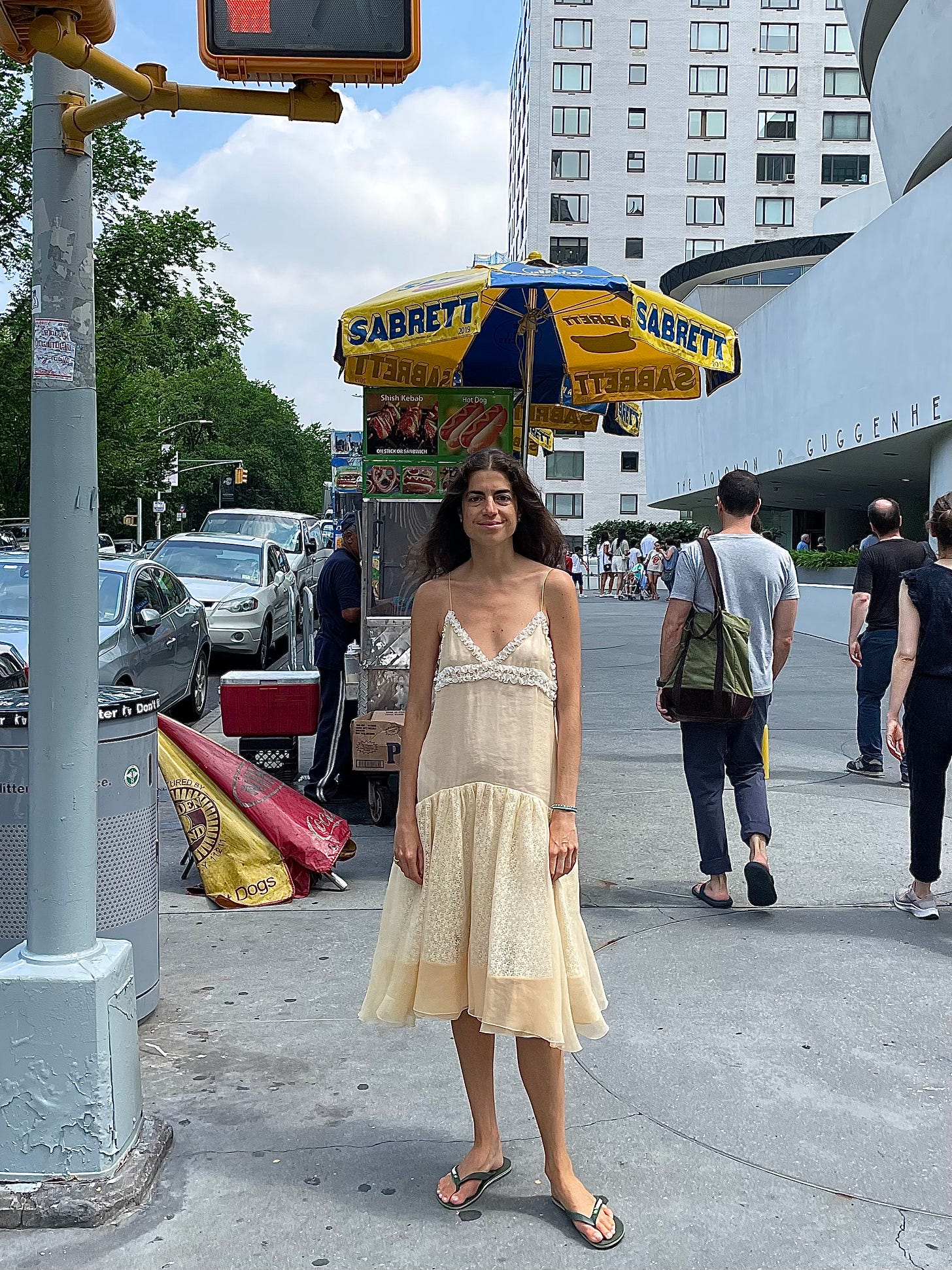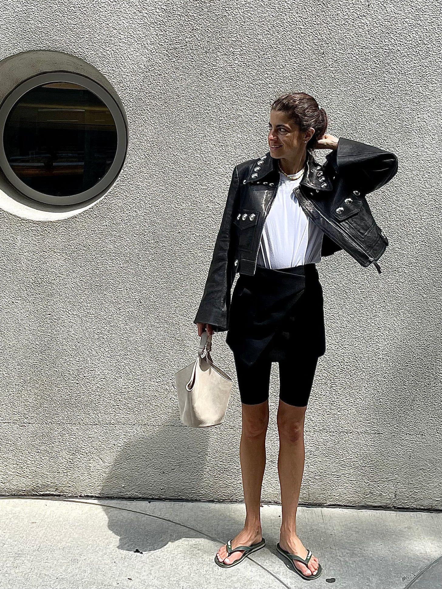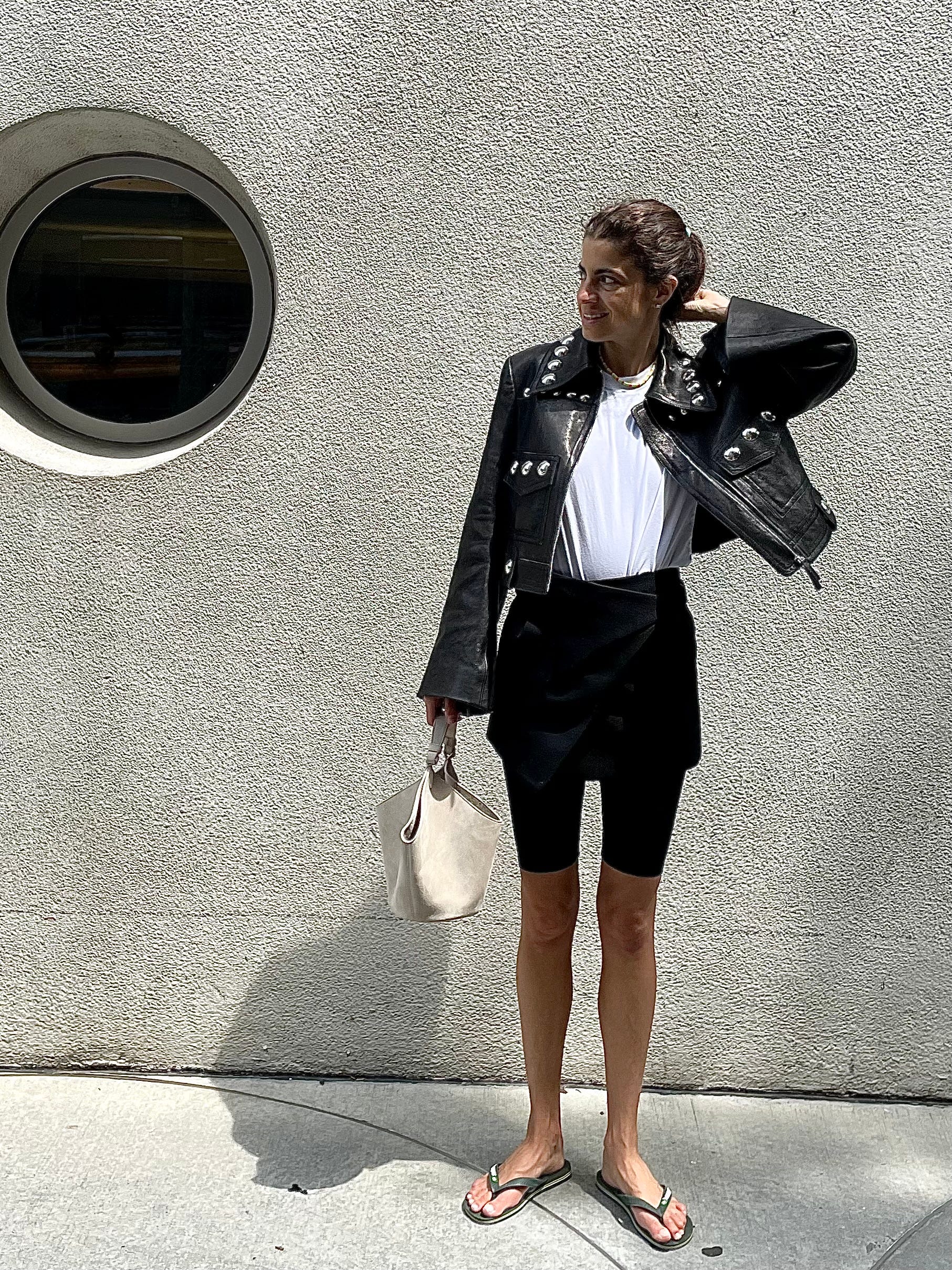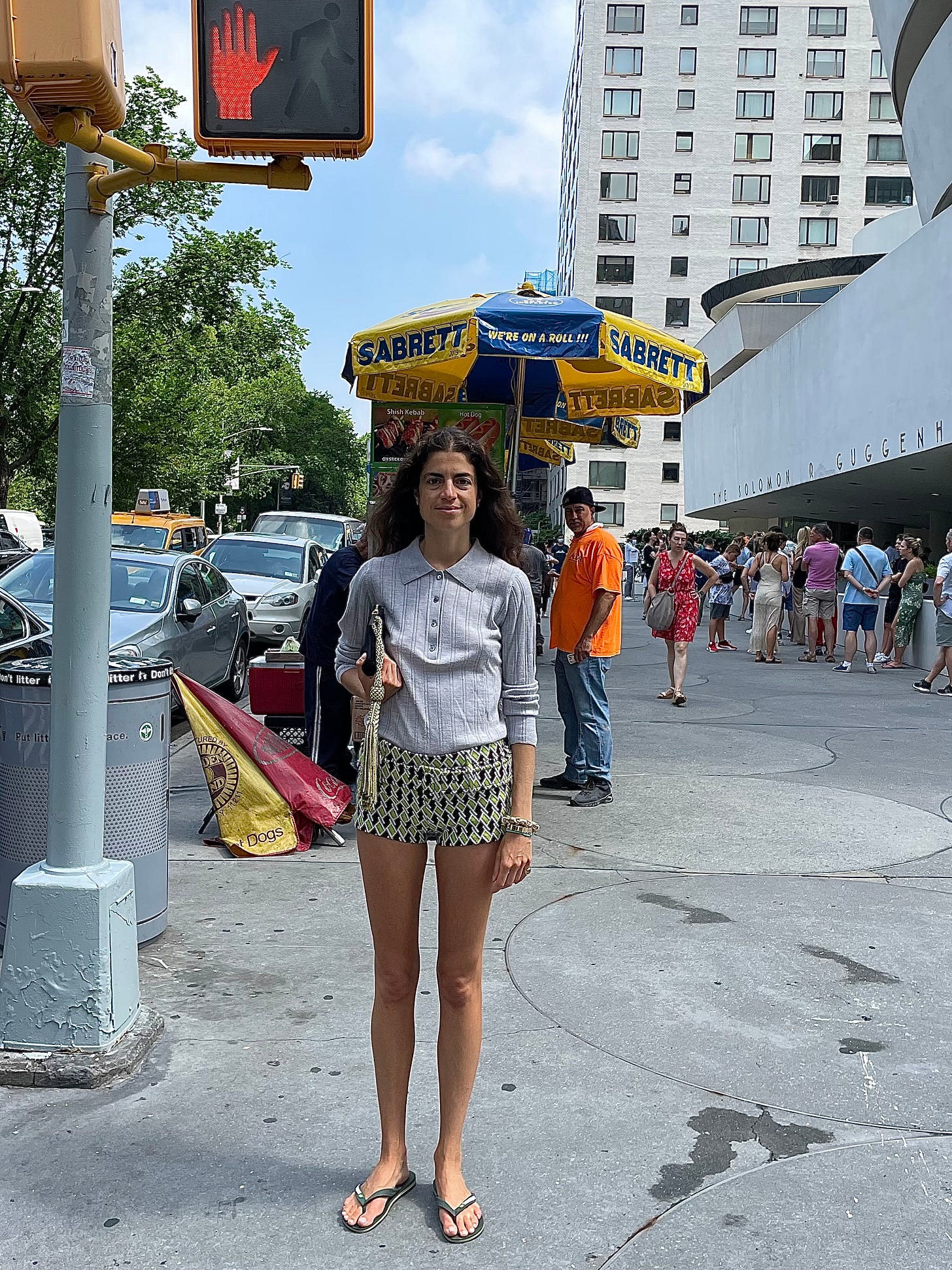 But back to the flip flops: heeding advice from last week’s letter on a mini skirt over shorts is this final look that I’ll likely add to the list of things to break down in a future dispatch: