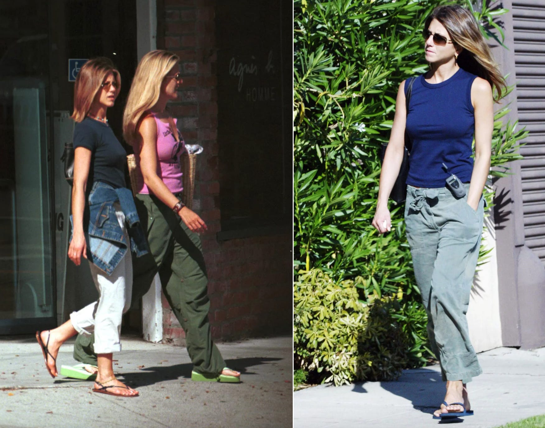 The more I think about the way I’ve been dressing, the more I realize I’ve been dressing a lot like early 2000’s Jennifer Aniston — going for inconspicuous but effortless, intentionally. Casual pants or frayed-hem shorts, lightweight button-downs or tank tops, plain old flip-flops.