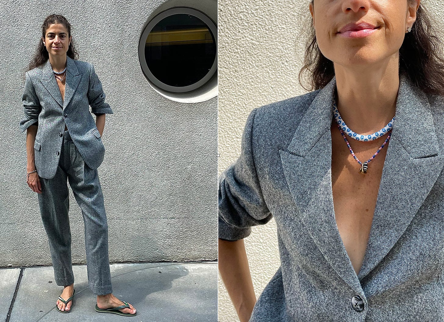I also like them with a makeshift three-pc suit, in particular when the inner layer is a quilted jacket and the blazer is a shacket.