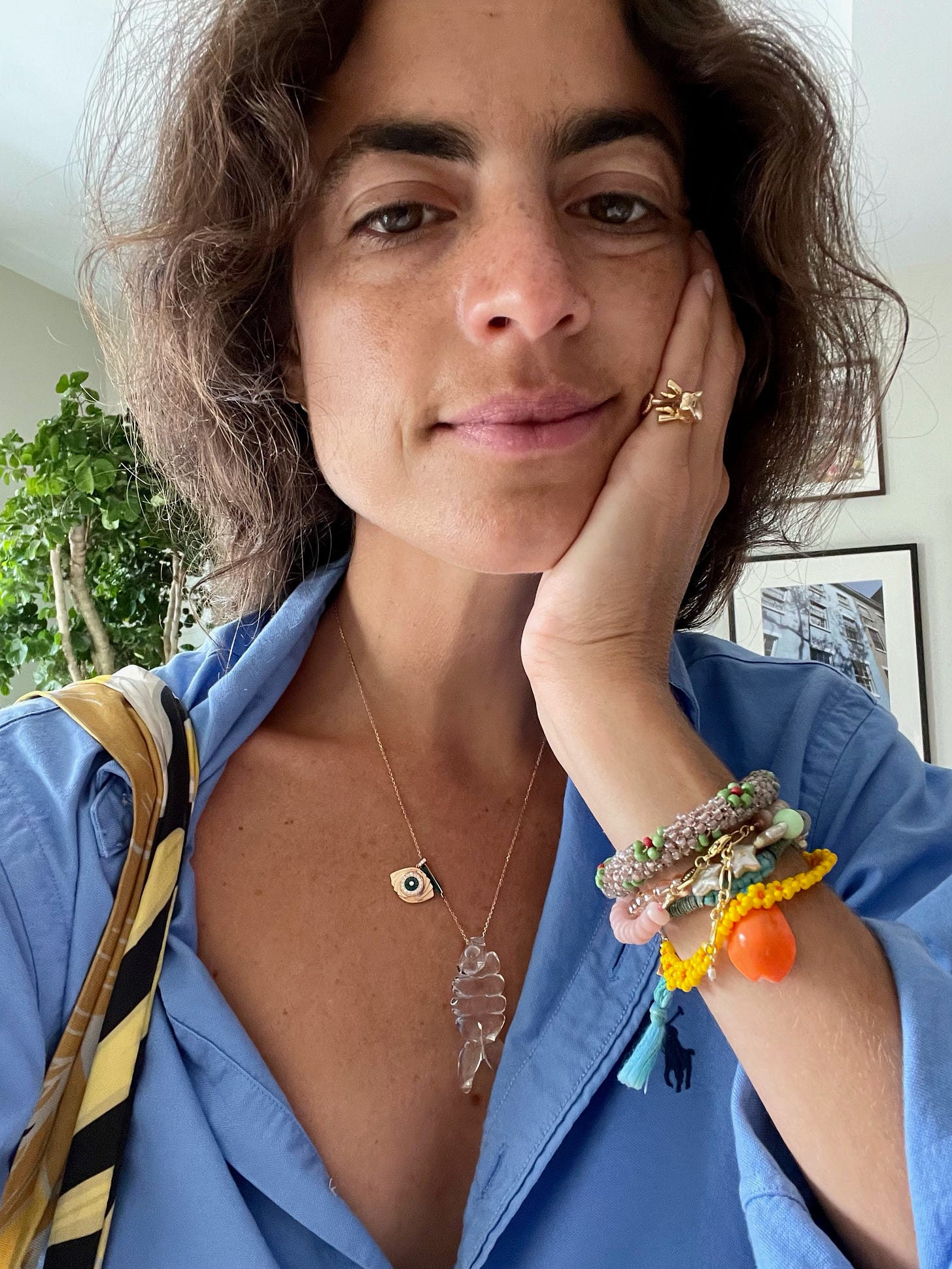 The bracelets are what remains of summer: a puka shell-on-thread from Aurelie Bidermann (found a similar one from Farfetch for $96), but these ones from Etsy are both very good and very bad. The ideal combo — $6. The yellow flower bracelet is from Joso Joy, a brand that found me (and not the other way around!) on Instagram. In the middle is a hand-strung string of eclectic beads from Ashley Harris’ Don’t Let Disco, ahead of that are some pink opals from Anni Lu (look at this hot pink one!!!) and at the top is a bracelet I bought at the bazaar in Turkey. It’s also handmade. The ring is from a small French fine jewelry brand called Salomé Rico.