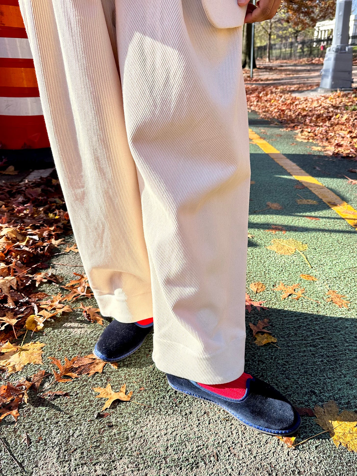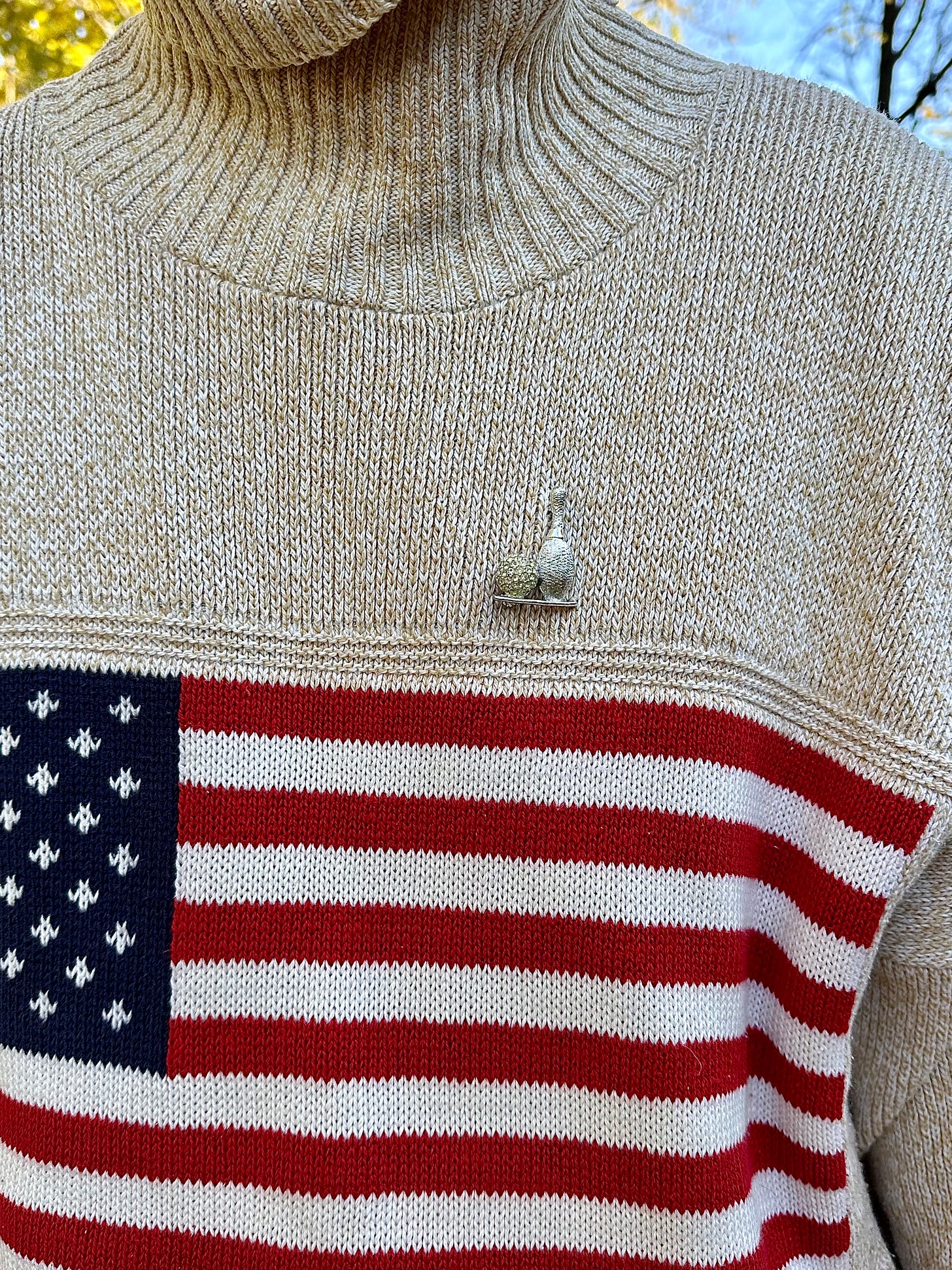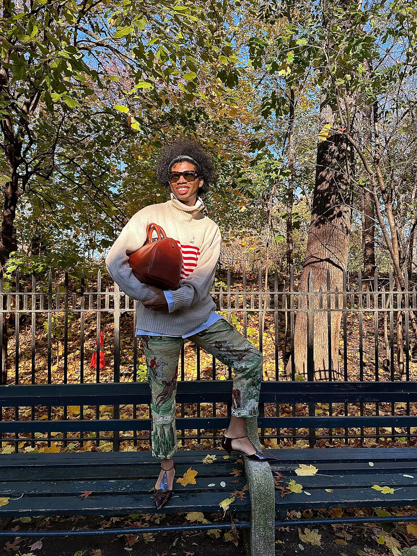 I still want to look dressed up, but also feel comfortable, a bit cozy. You get that with the sweater and pants. I got the sweater on eBay — my search term was “American flag Ralph Lauren turtleneck sweater.” I was walking down Mulberry Street just beforehand and saw these two women fully decked in Ralph (or Ralphism, really — one had on a beaten hat that didn’t have any insignia but looked like it belonged to his world) and at first, I was just amazed at their commitment to encapsulating the brand, then I did a double take, noticed the sweater and was like oooh, that’s really nice, so I went home and launched my search.