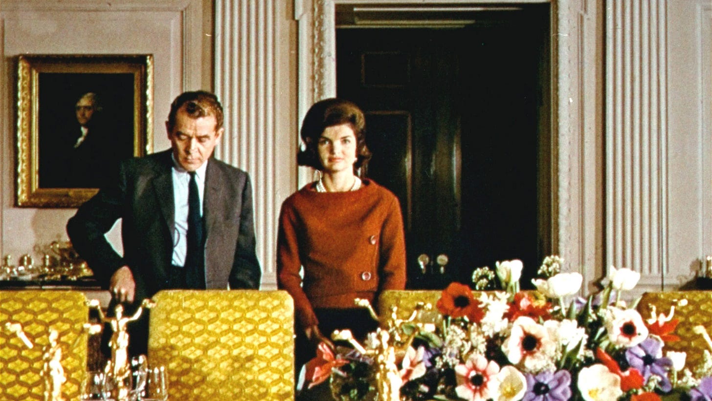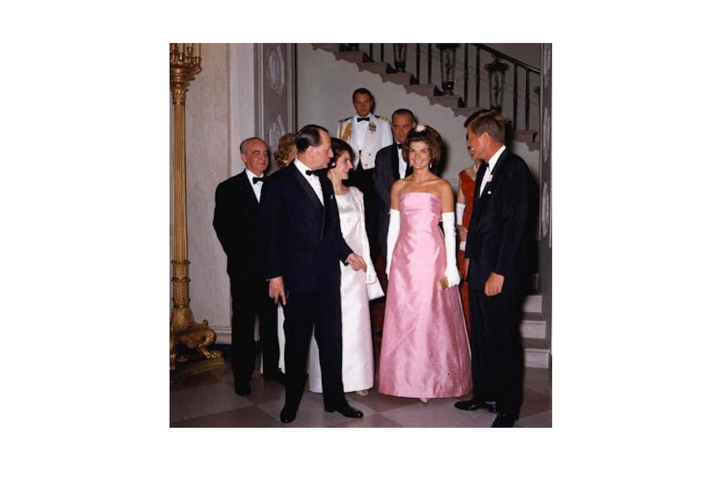 The dress is from Batsheva — it came with a crinoline skirt underneath, but I decided not to include it. It reminds me of this Jackie O look she wore to a state dinner with Andre Malraux [the French minister of culture].
