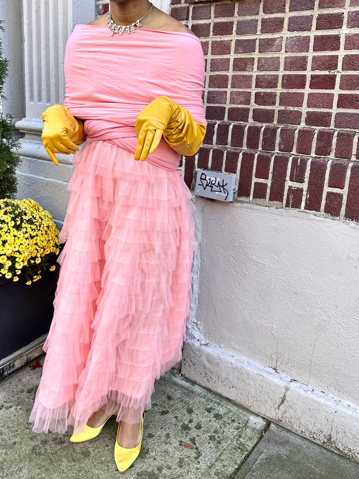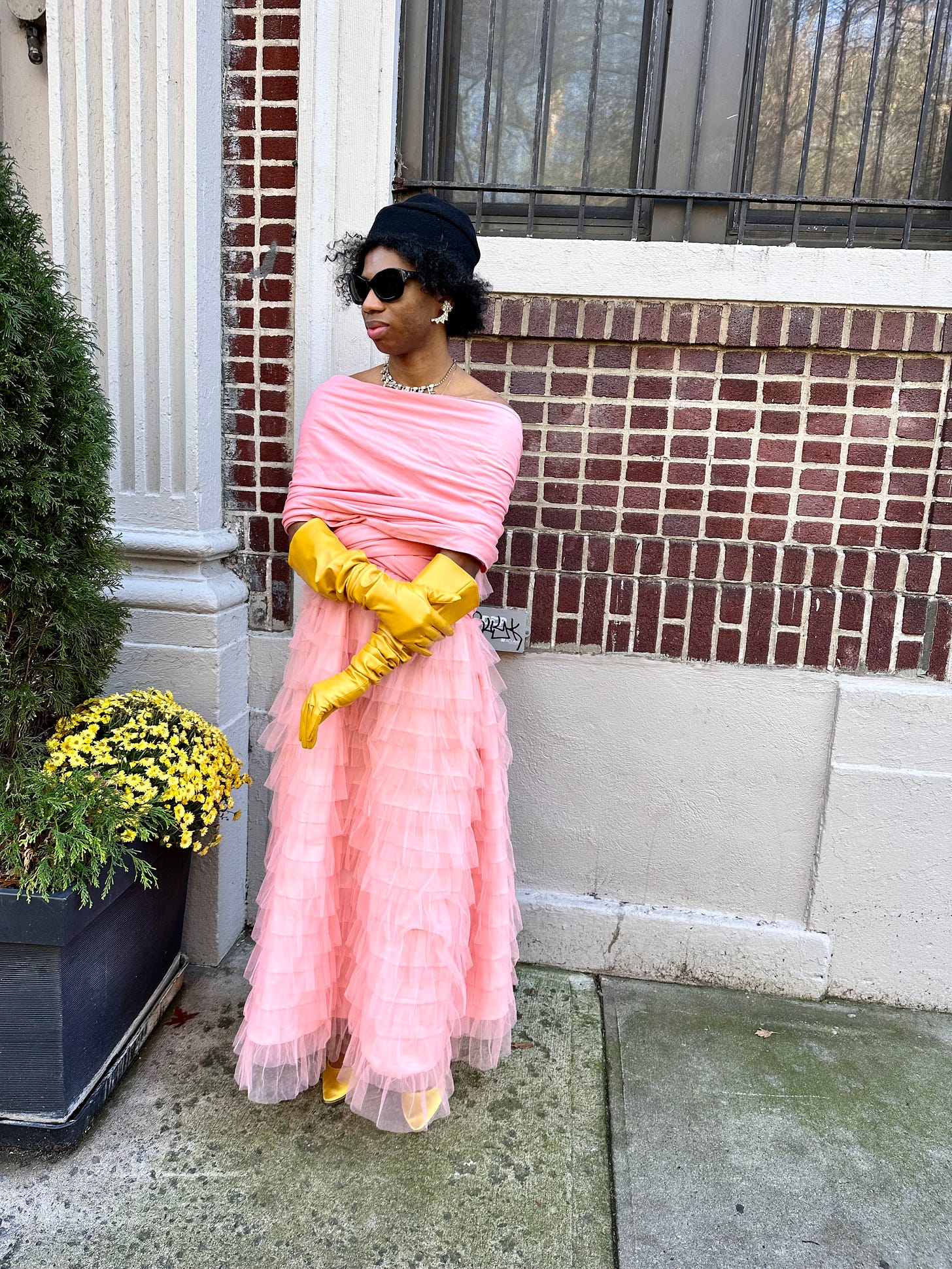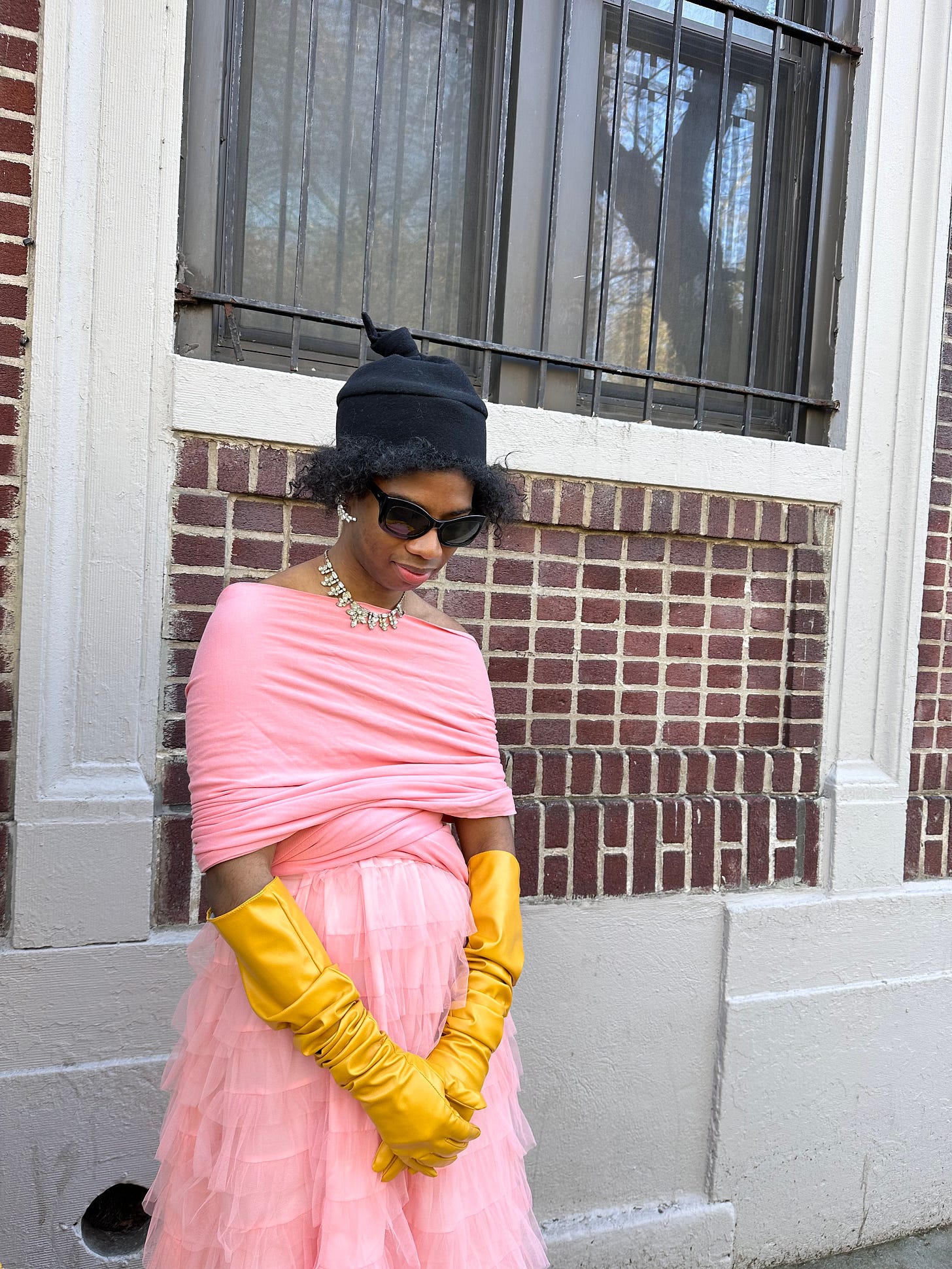 I got the gloves on Amazon but before I found them, spent an ungodly amount of time looking for yellow gloves to match these yellow heels (Vetements x Manolo Blahnik from the collab they did in 2018; I found them on The Outnet for like $250 in 2019).