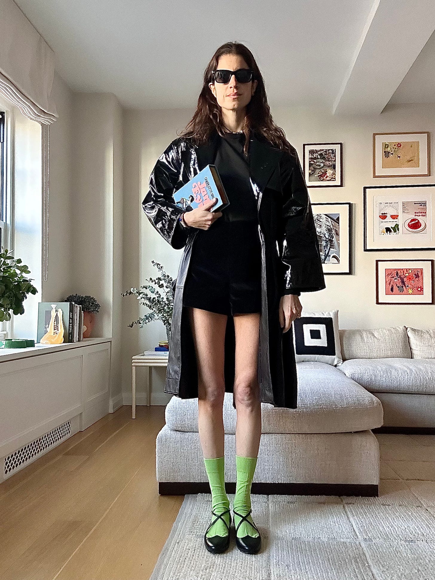 Olympia Le-Tan book clutch, Q House of Basics t-shirt, Doen velvet shorts, Falke socks (Pantherella has good color options), Camilla Elphick flats On the heels of last week’s Dior mens show, this one feels particularly fresh.
