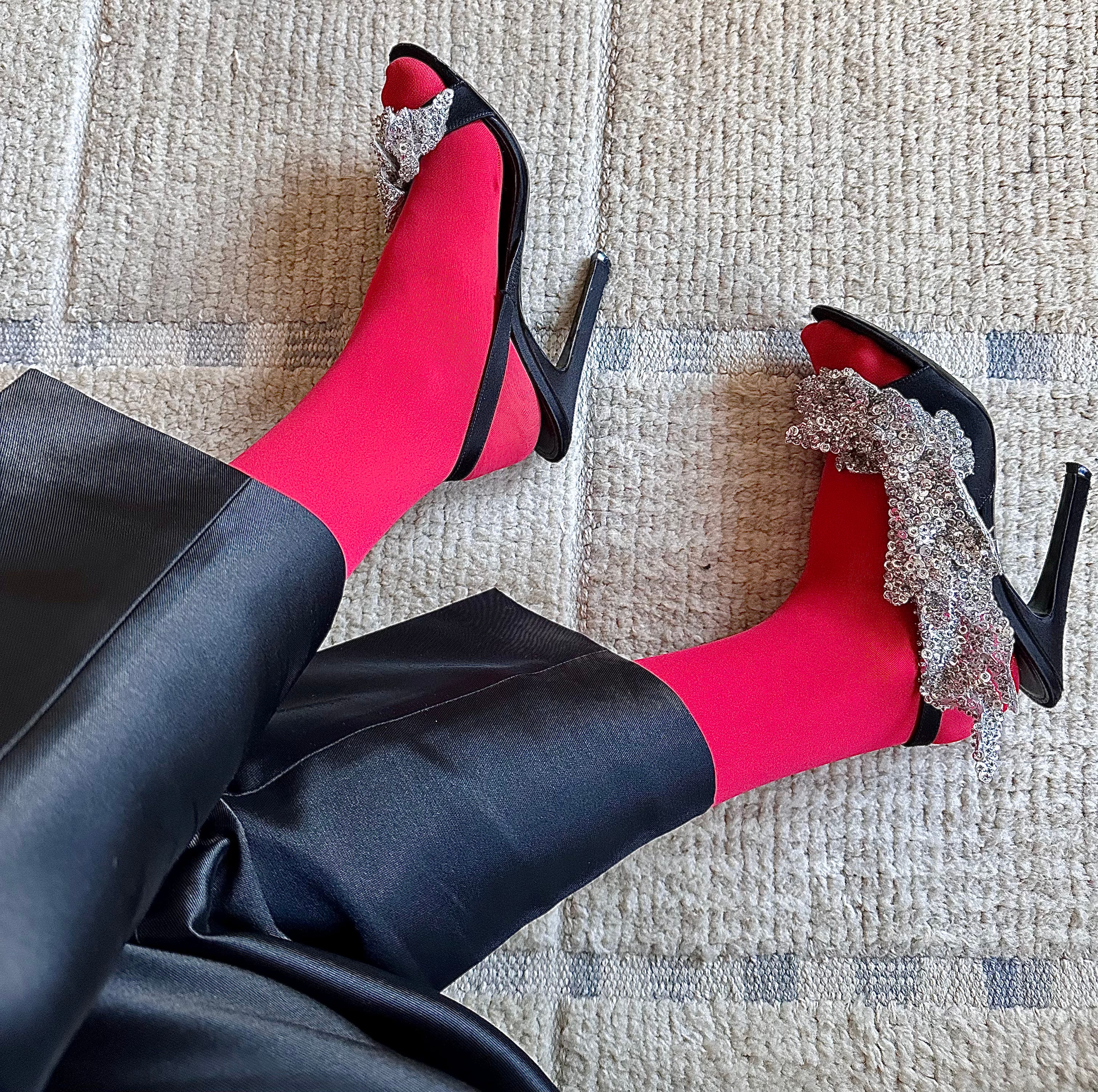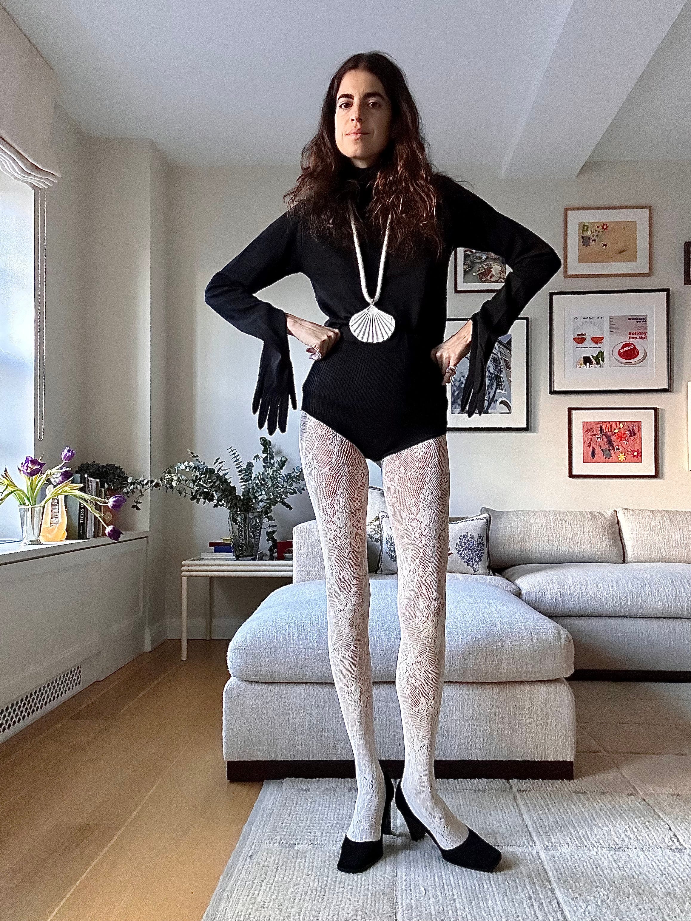 Take your tights seriously. But not too seriously, you know? Like wear tights, bask in tights, marvel in your tights, but get weird about them too. No color is off limits.