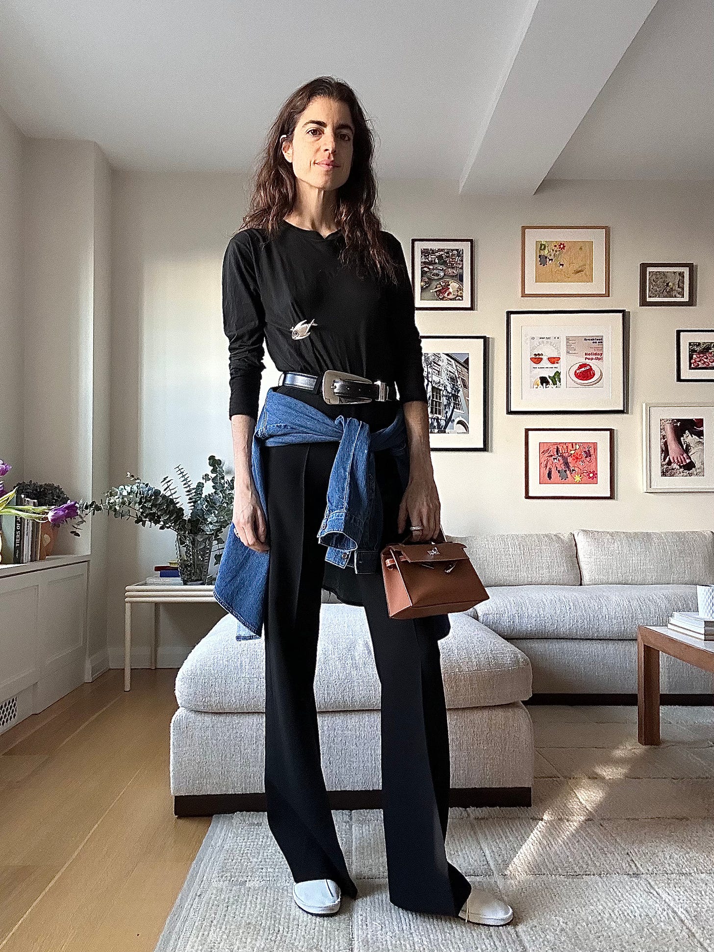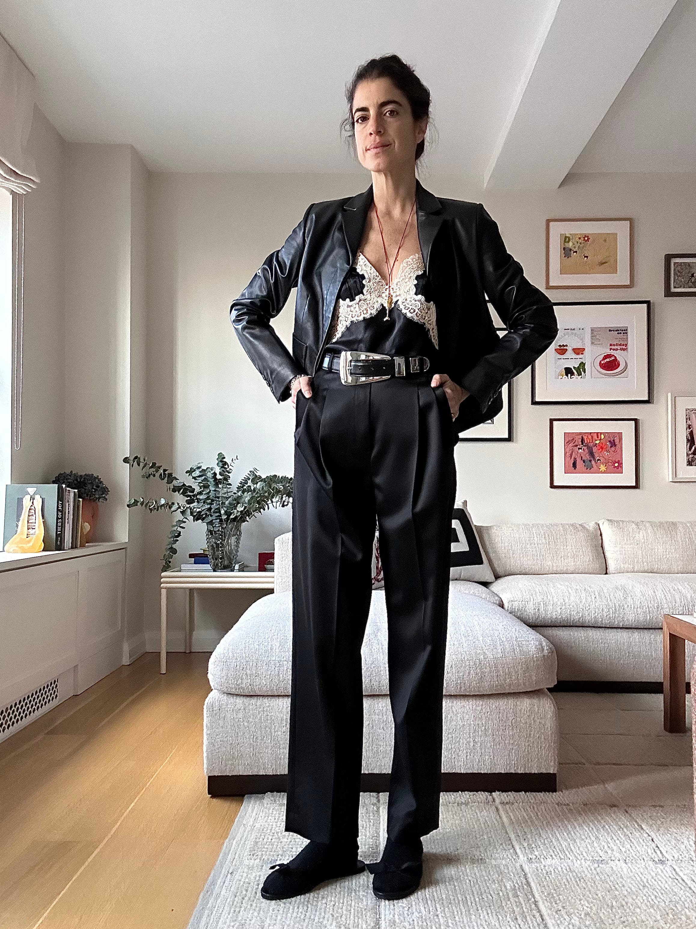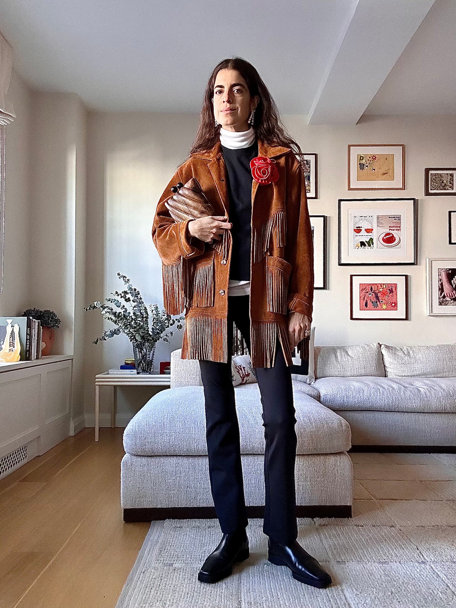 Although I guess when we’re dealing with the suede fringe jacket heard round the world, main character energy is never really in deficit. But I can take this opportunity to highlight the unlikely wardrobe hero of the season: these Alo Yoga black flare leggings (shown at very top); for something a little dressier, these from Frances de Lourdes are no q subjective best). They become key man to the widest range of occasion-specific outfits of the season.