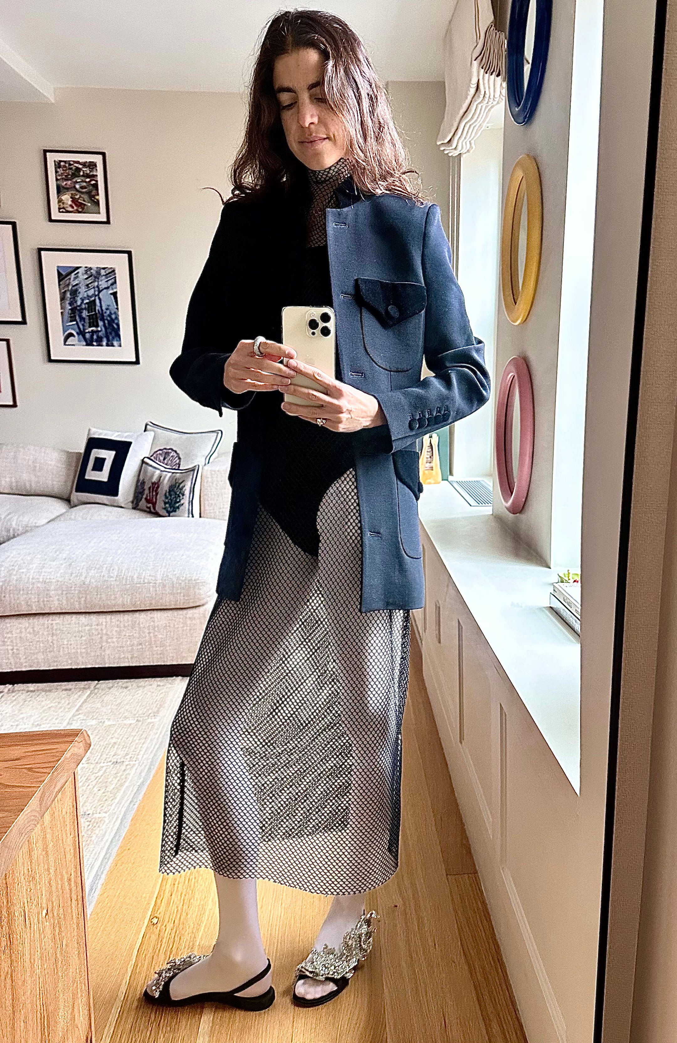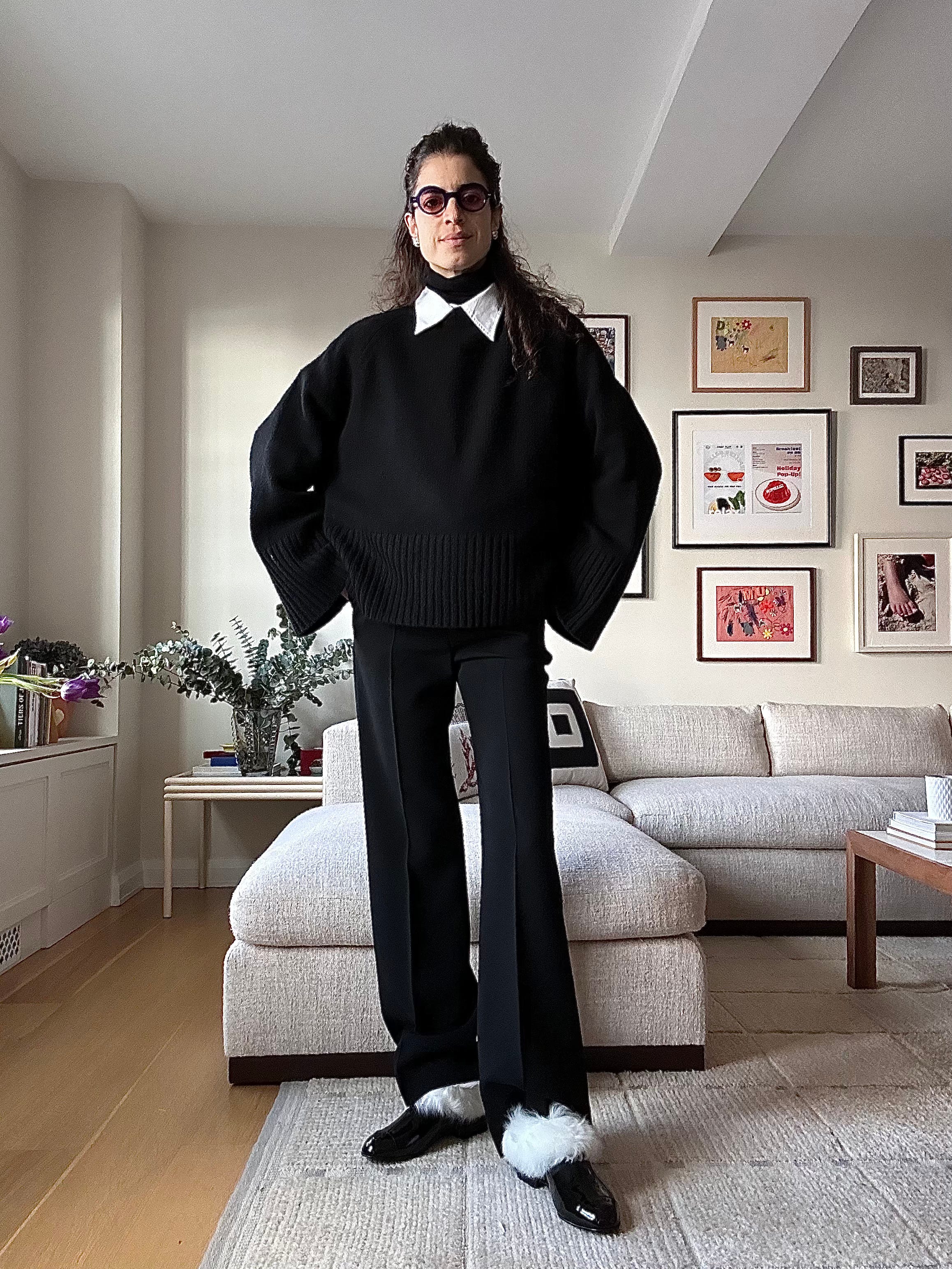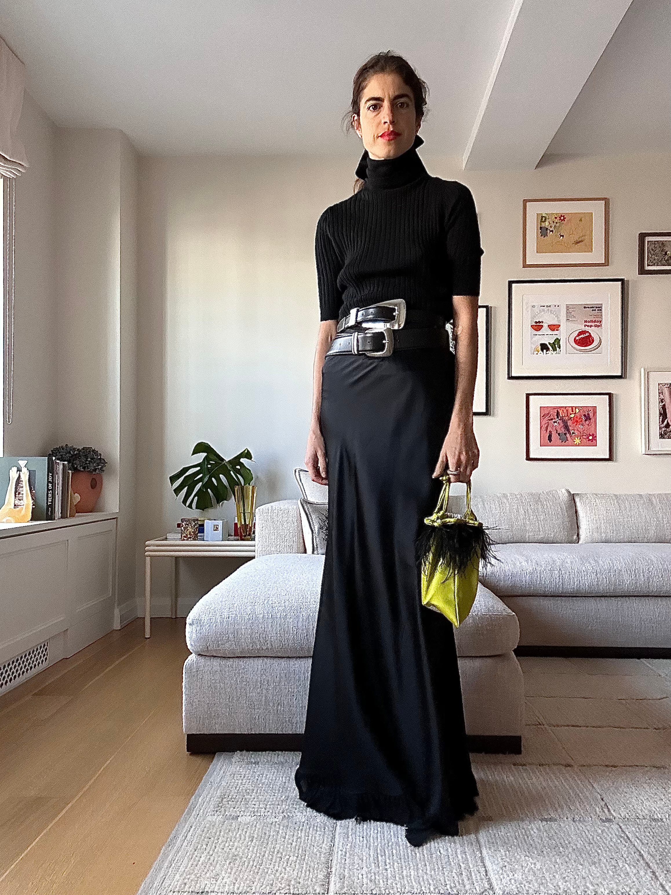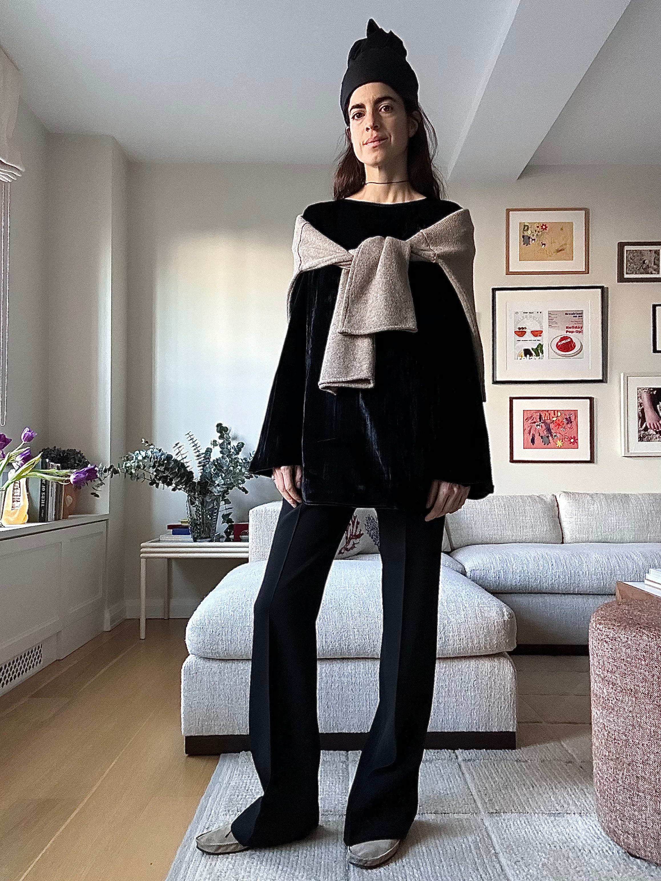 Although I guess when we’re dealing with the suede fringe jacket heard round the world, main character energy is never really in deficit. But I can take this opportunity to highlight the unlikely wardrobe hero of the season: these Alo Yoga black flare leggings (shown at very top); for something a little dressier, these from Frances de Lourdes are no q subjective best). They become key man to the widest range of occasion-specific outfits of the season.
