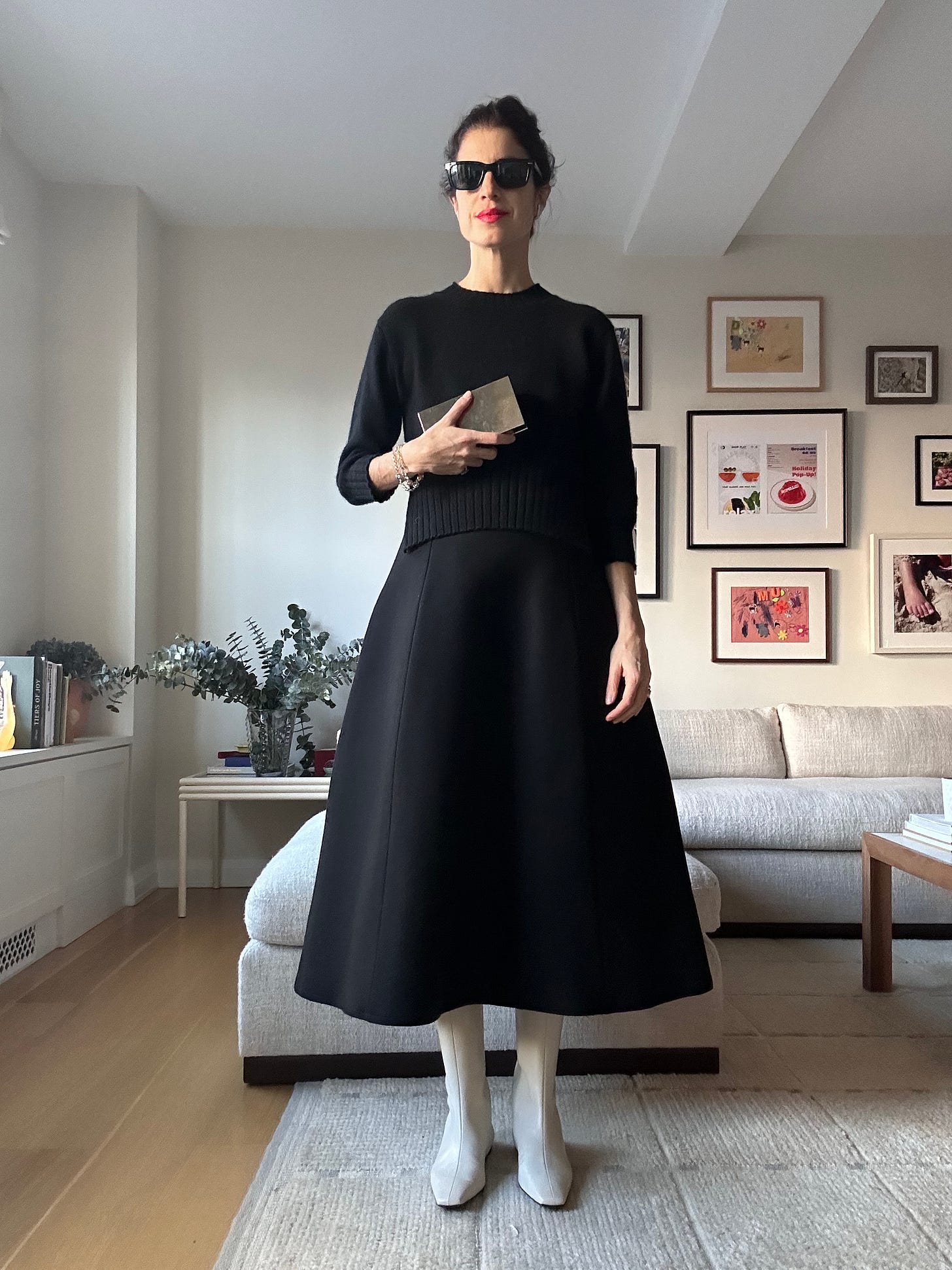 I love all of these looks and you definitely have the coolest OBGYN! I am ordering white tights immediately! I am waiting for my Fed Ex driver to deliver my moccasin ankle Toteme boots. Thank you , thank you Leandra!