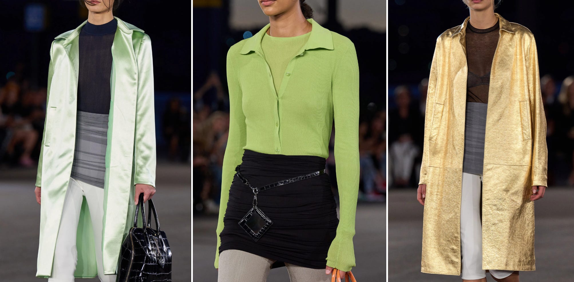 It’s November 1st in New York right now, and something like 65 degrees, which makes it warm enough still to embody the spirit of these looks, albeit with jackets of a slightly different ilk — light wool numbers or a classic macintosh coat a la this: