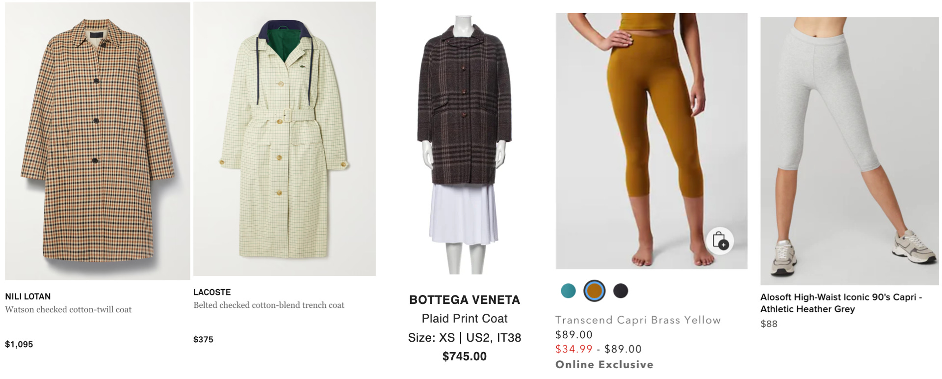 And for good measure, here, too, is the right shape of trench coat and army green cropped leggings. You’ll notice most of the leggings I linked don’t necessarily look like they are PERFORMANCE quality — this is on purpose. A less overtly elastic/bound cotton lends itself well to creating more formal appeal for the outfit, which can feel kind of daunting if you’re not entirely comfortable with tight bottoms. This is why the coat is such a great companion — covering most of the top of your legs the way a dress would, but still accomplishing the overall task of spinning you into a new trend that you like.