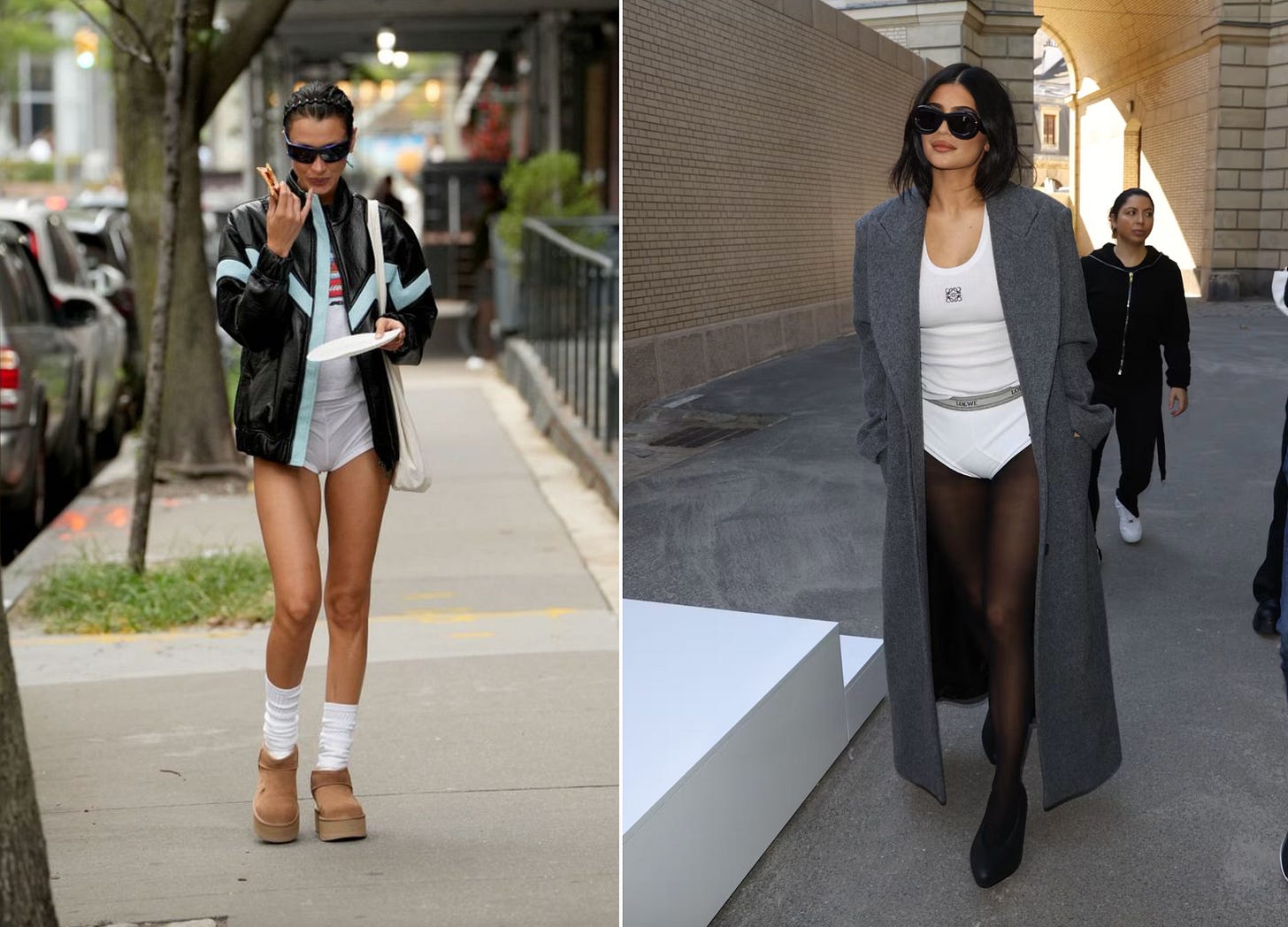 But as far as pop culture/Fashion with a capital F goes, in-between dressing became more than just residual behavior from 2020 when the new trend of wearing ankle-length Uggs with high socks and little shorts went viral because, I suspect, of a look that was captured of Bella Hadid on the streets of New York.
