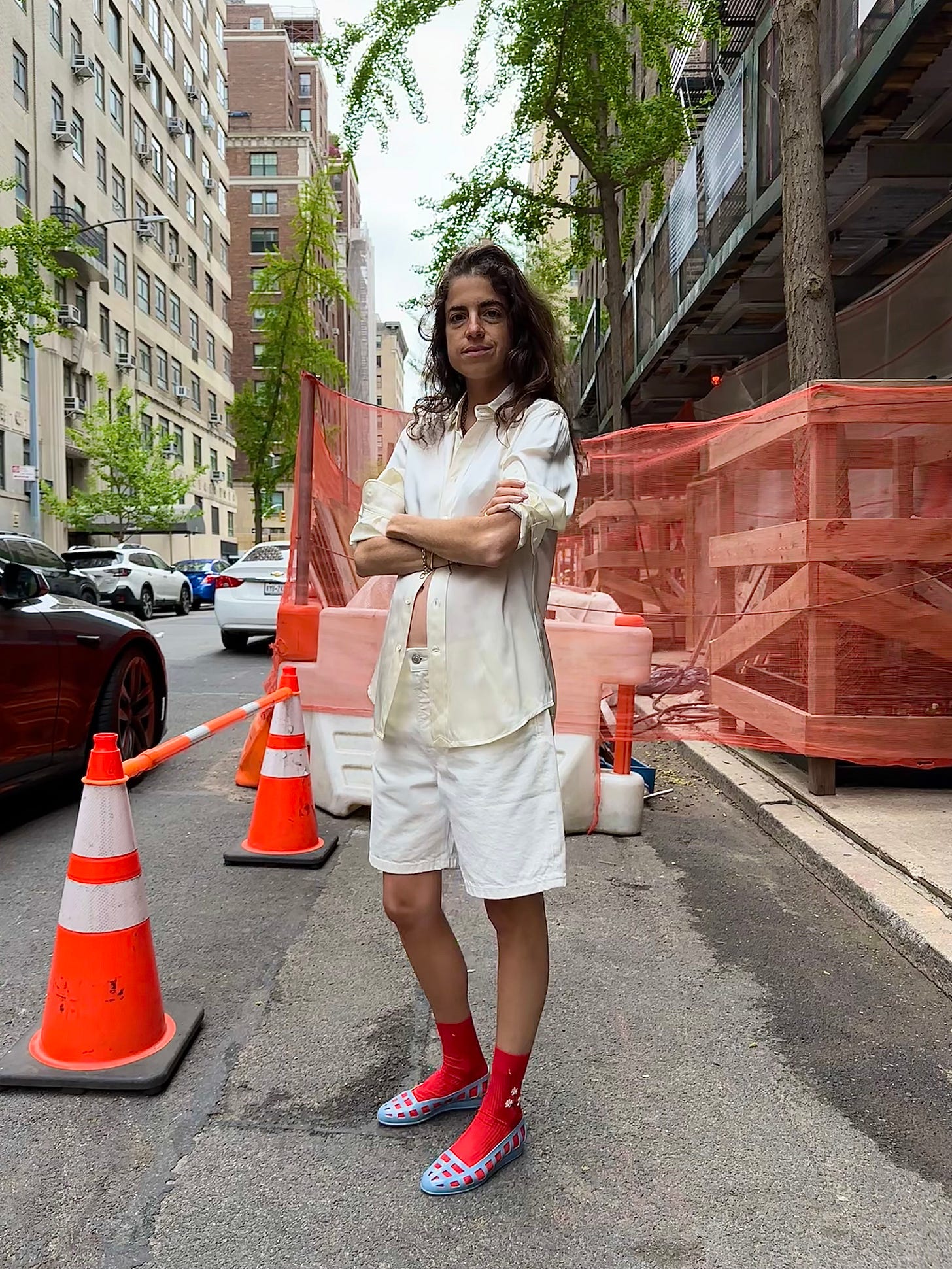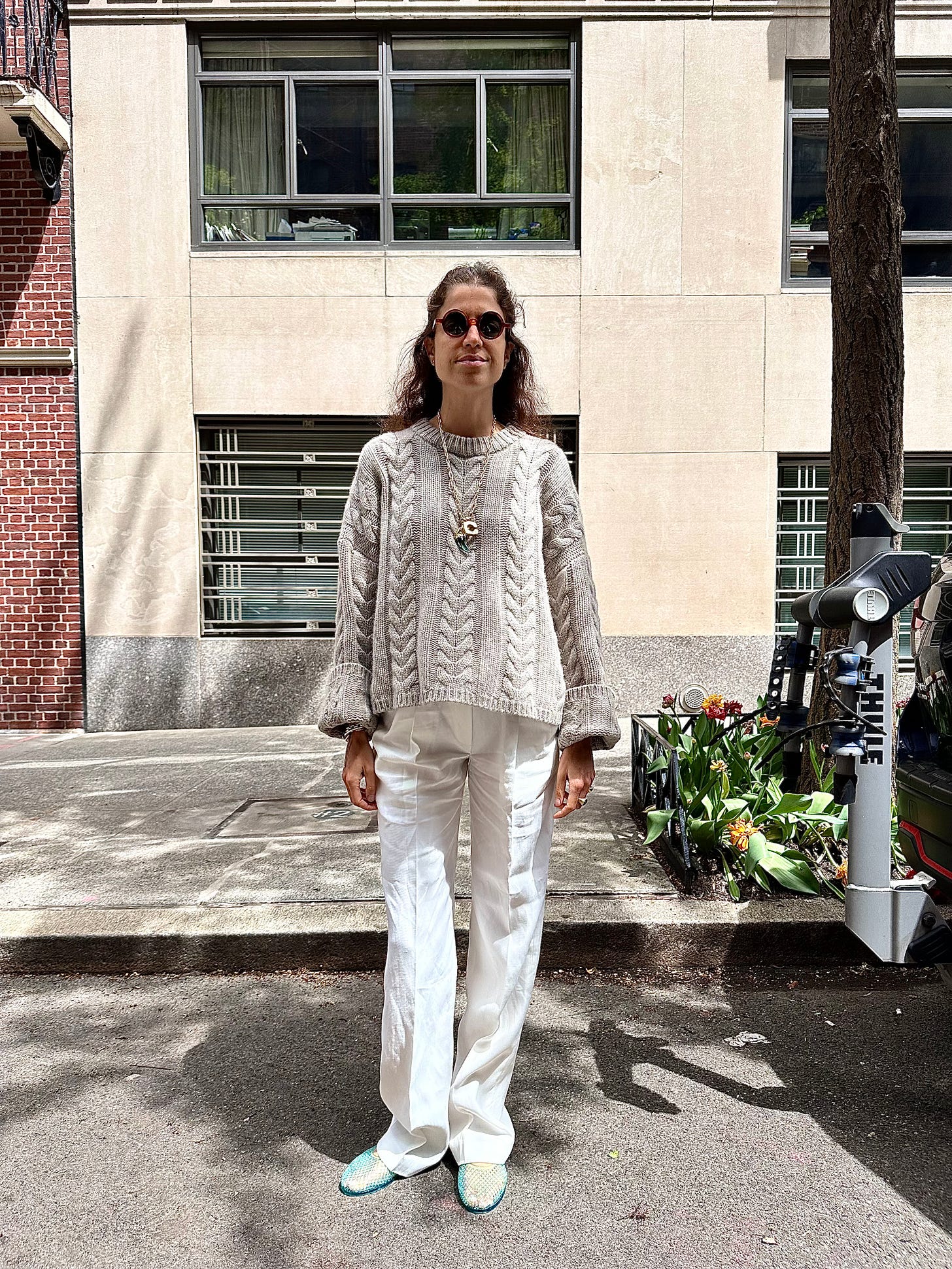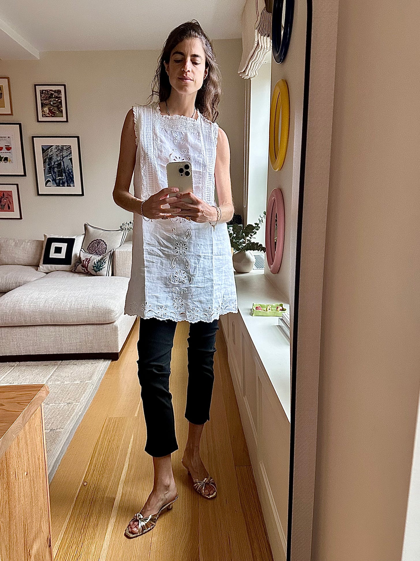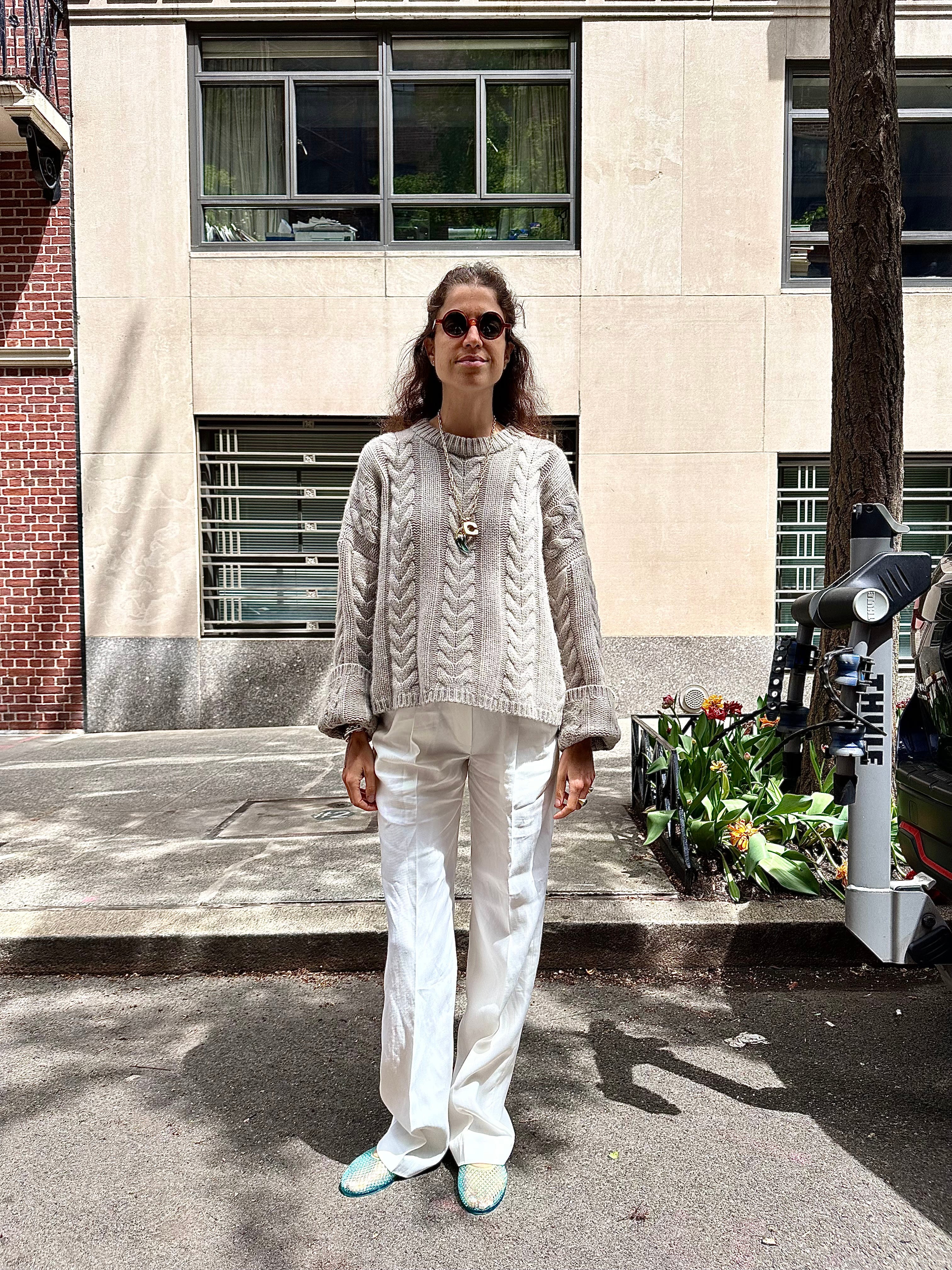 Recently received (gift from brand) these white pants from Loulou Studio, too. They have an elastic waist but fit perfectly straight leg. The material is light and they don’t wrinkle (bc: viscose/linen blend) like straight linen does. They’re ideal for pregnancy, or simply as a good pair of no-pressure summer pants.