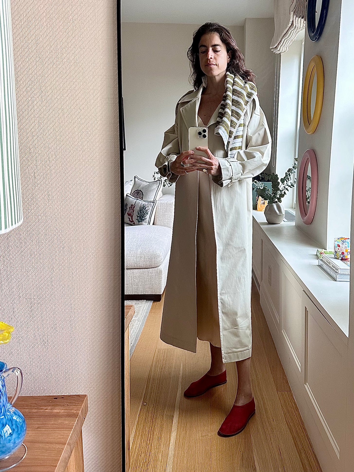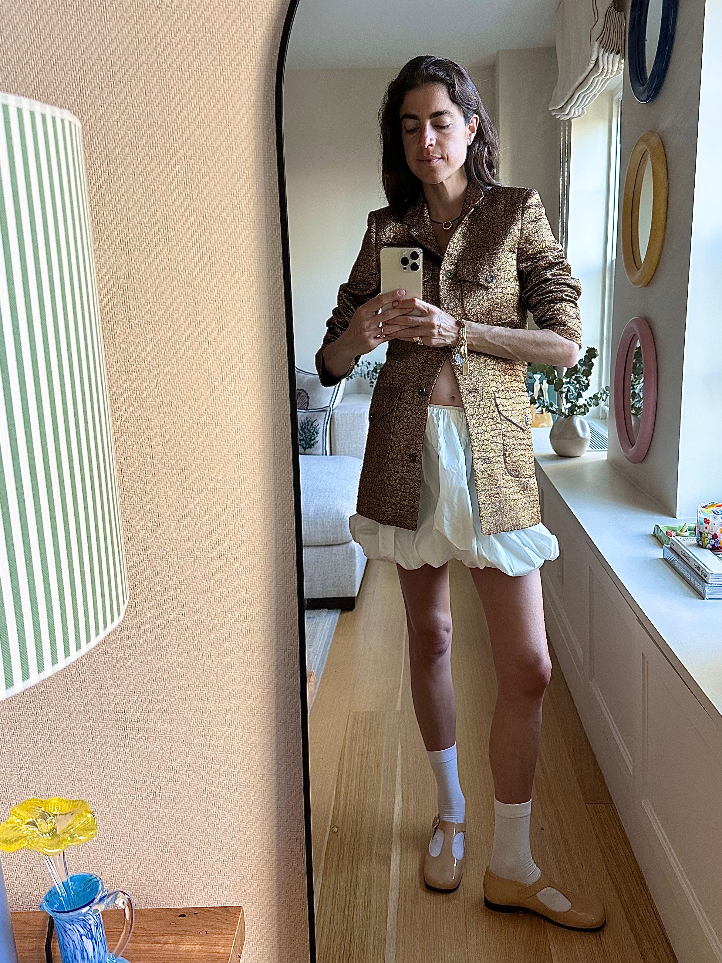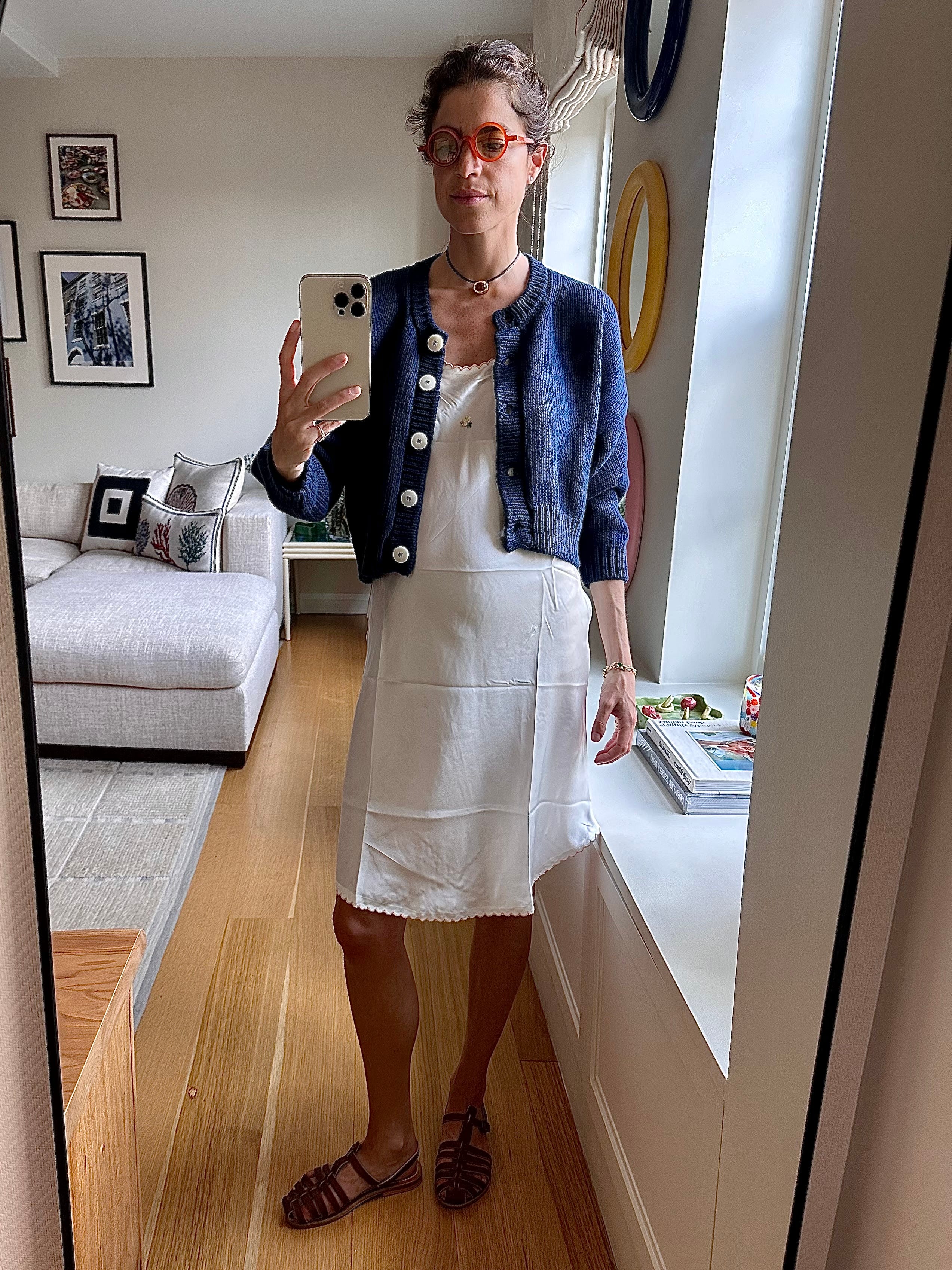 Am still interested in the return of the bubble hem (see: Nicholas Ghesquiere’s Louis Vuitton as primary champion, with recent contenders Maria McManus and Tory Burch from New York and Simone Bellotti at Bally from Milan as most recent still-aspirational-but-def-more-attainable conduits). I landed on this one from Majorelle and have been wearing it most prominently like this —