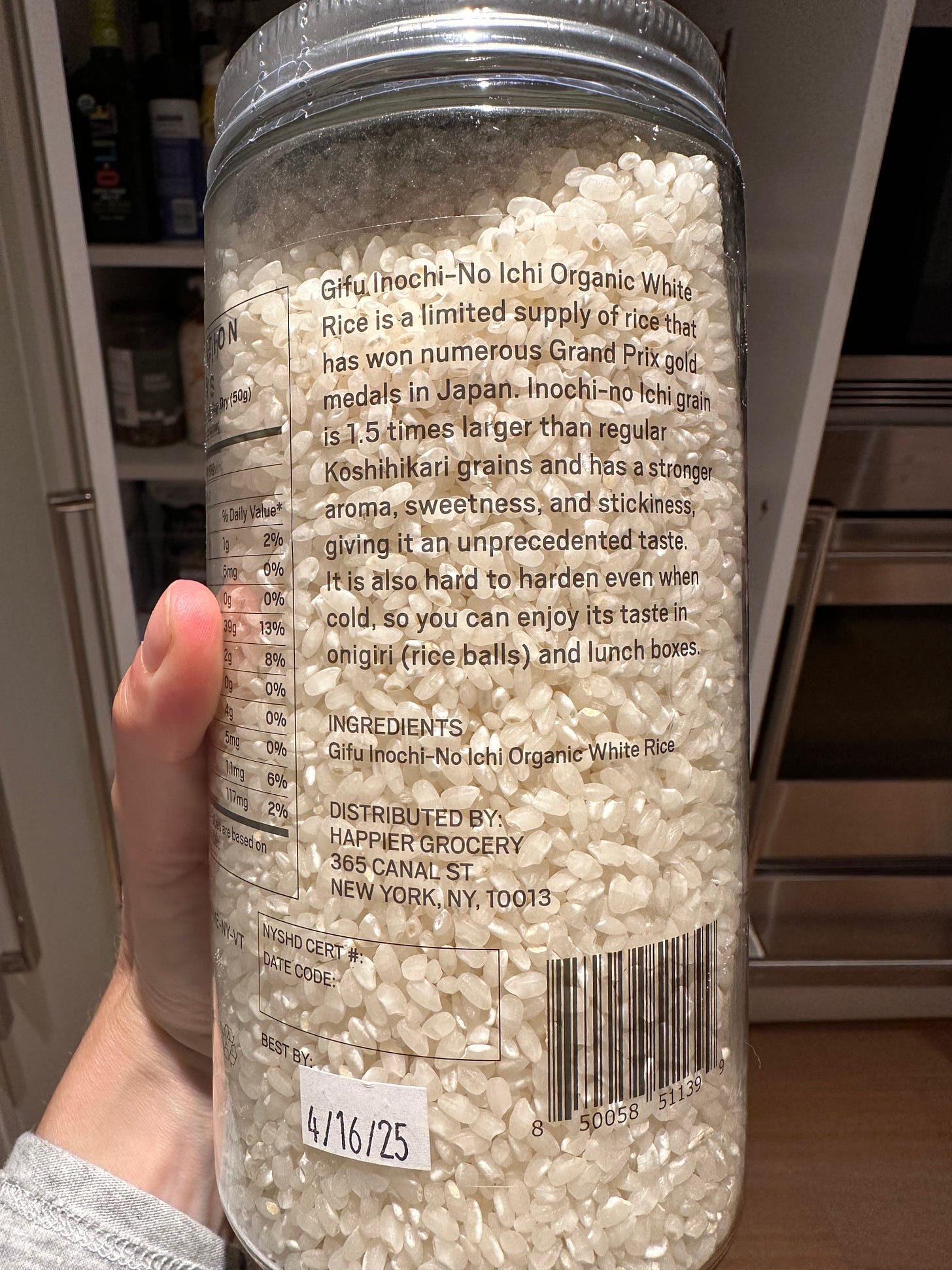 Also stopped by Happier Grocery on Canal Street last week (they’re calling it New York’s Erewhon. We’ll see). On tap was award winning white rice!