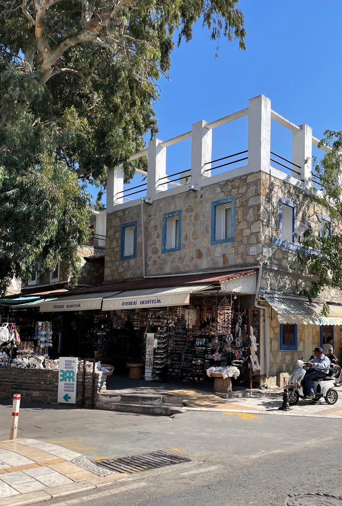 I was in the backseat of a car that my dad was driving through a coastal Turkish town and we were on our way to the beach, stopped in traffic among storefronts.