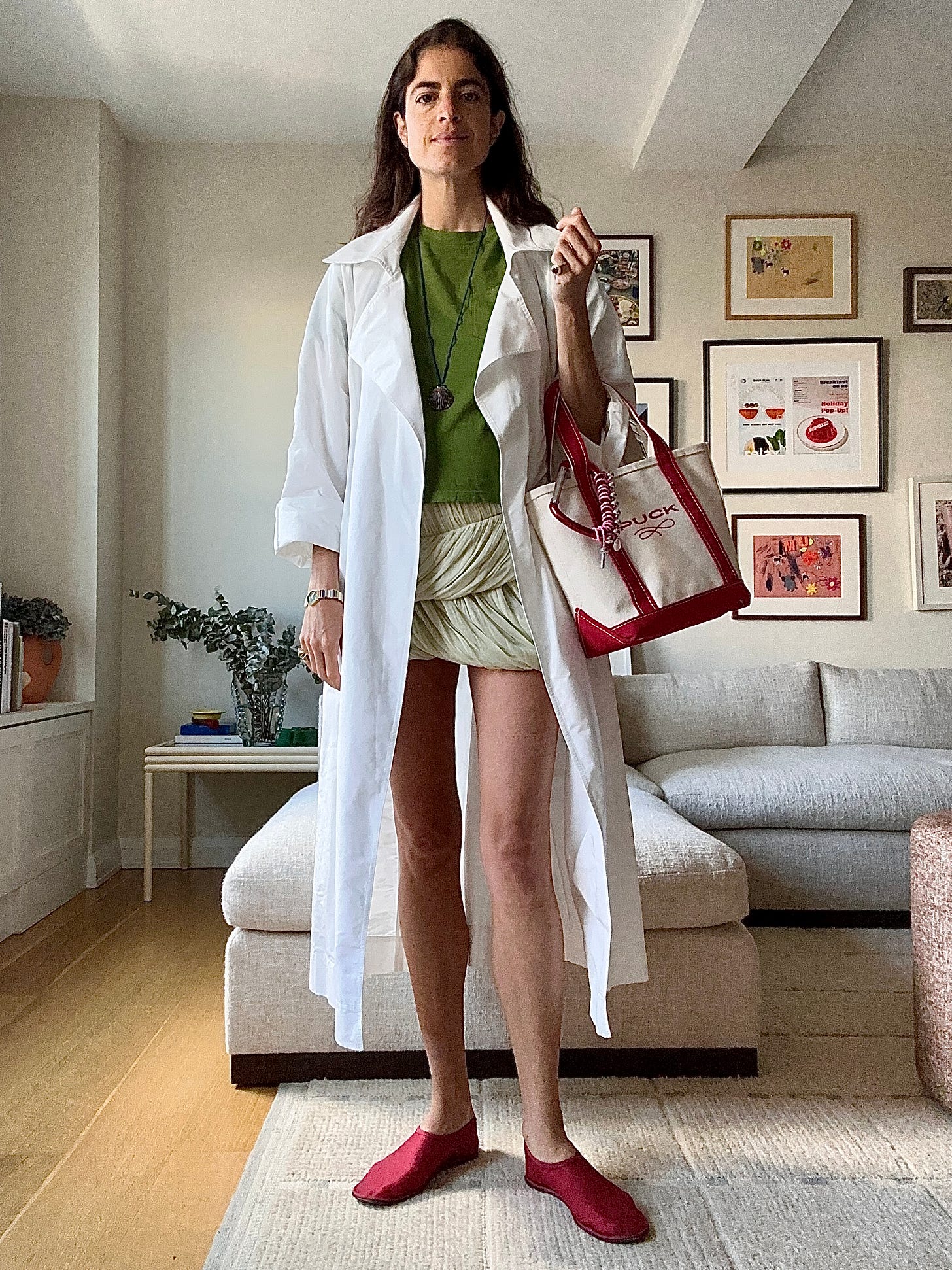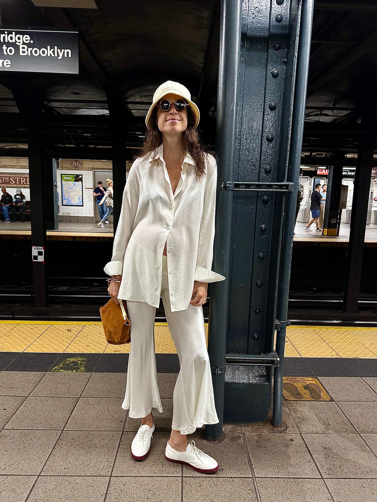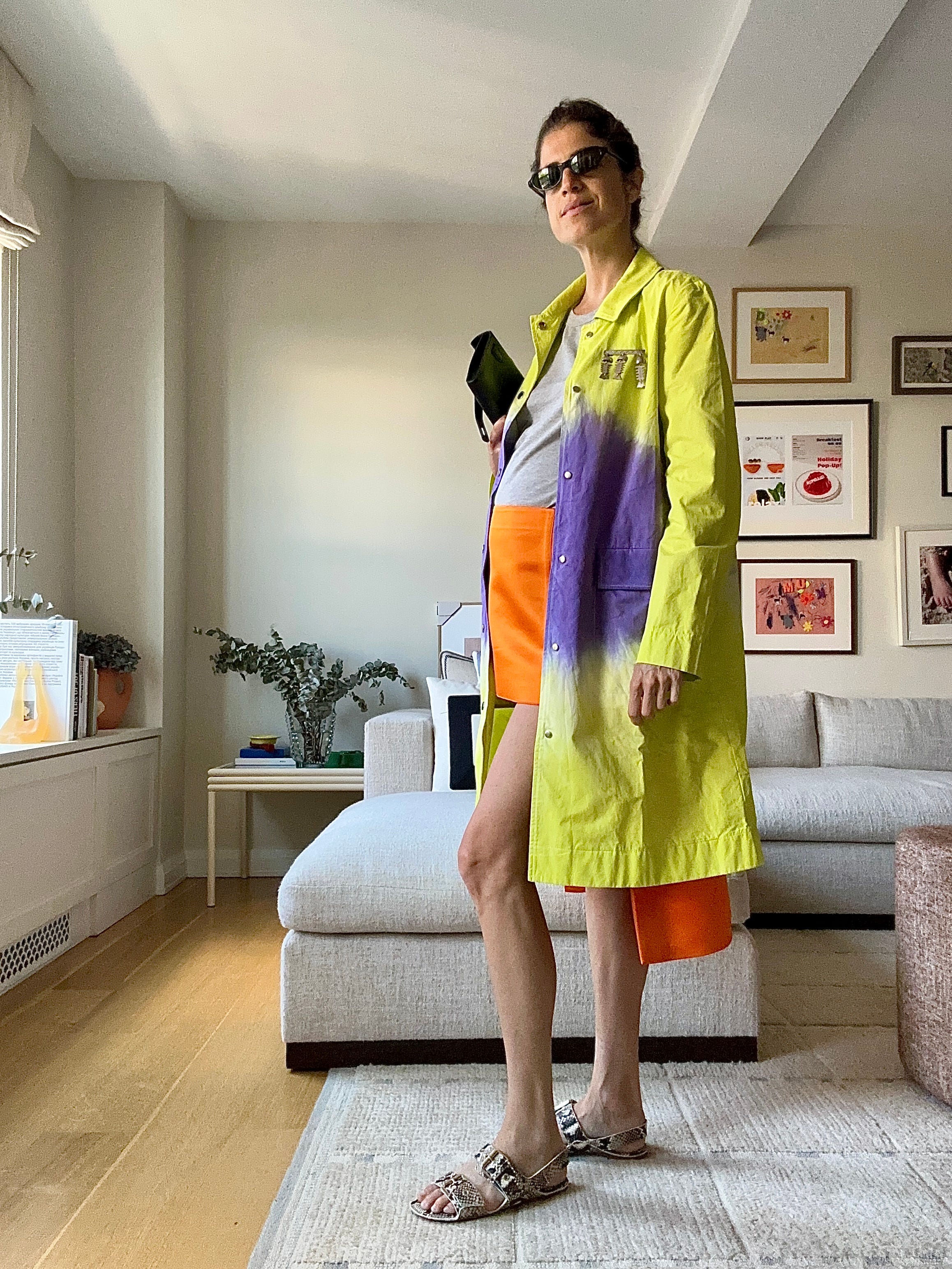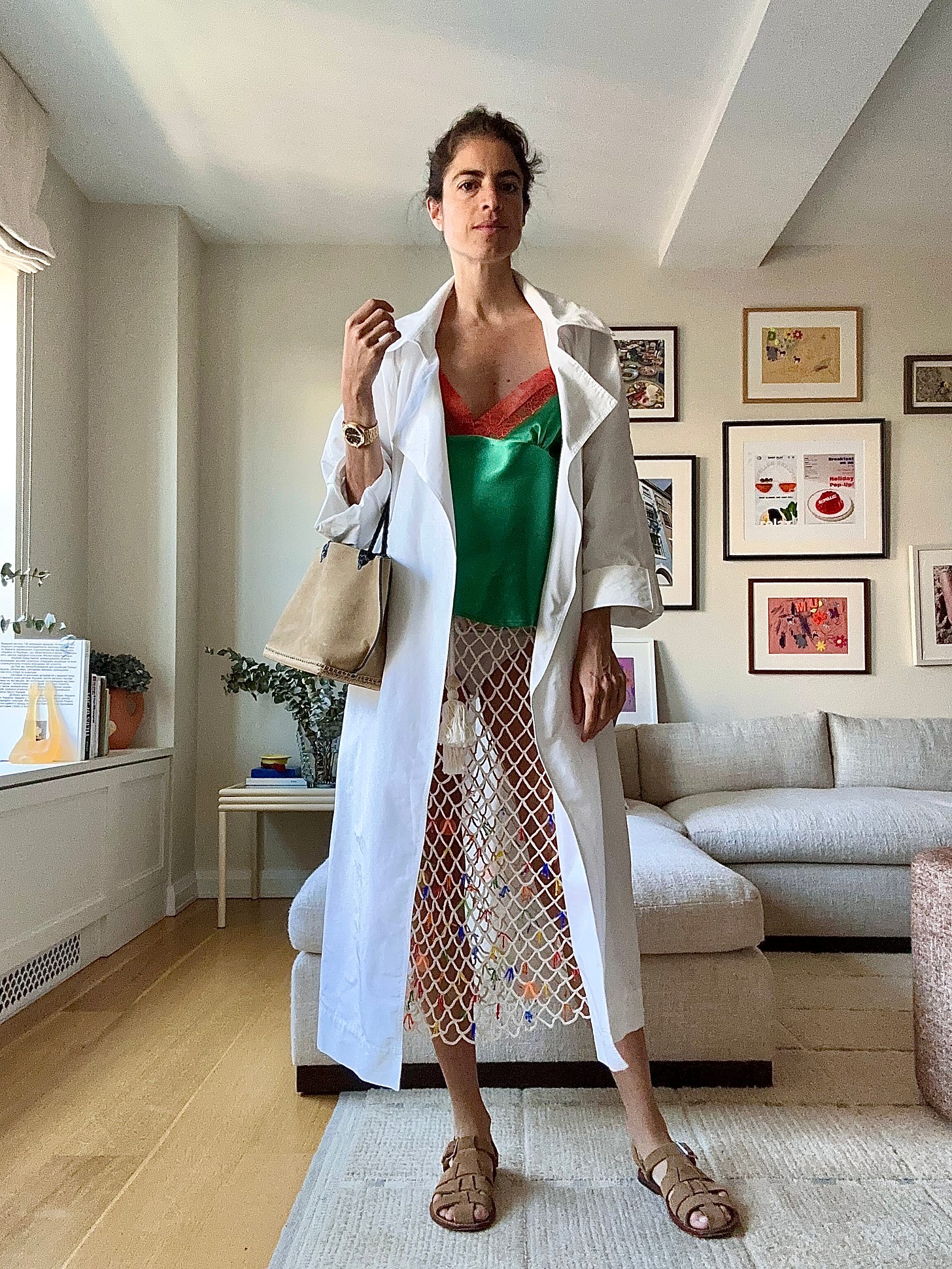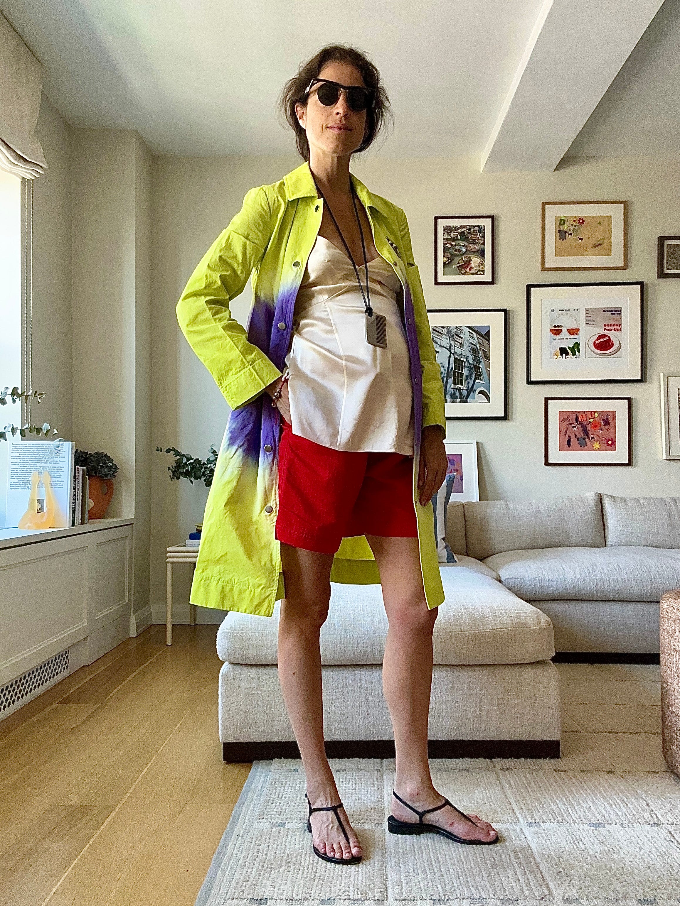 Hello, dolly! It’s me, Leandra. Notice that I’m wearing exactly zero accessories save for the sunglasses which actually ground the look. (And, fine, the fish pin I affixed to the summer trench.)