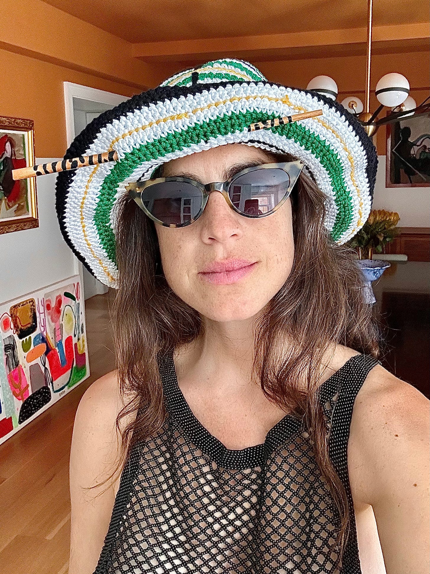 I’m just kidding, stick around, but one thing I’ll say about this one is: staying within the neutral palette of black and white inclined me further to get weird with the hat. Also, this top is made entirely of beads even though it looks mesh. I haven’t quite figured out what to put under it (mostly because it bothers my nipples) but I love how it looks against soft flimsy pants and the width of the arm holes, which flatter my arms.