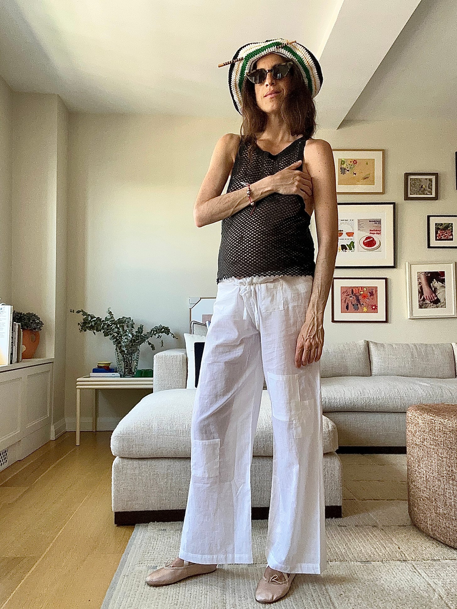 I defer to last summer’s uniform. What worked then still completely works now (the magic of drawstring pants is that they’re the jelly fish of clothing categories in that they expand and contract) but two updates for this summer for potentially dressier -codes:
