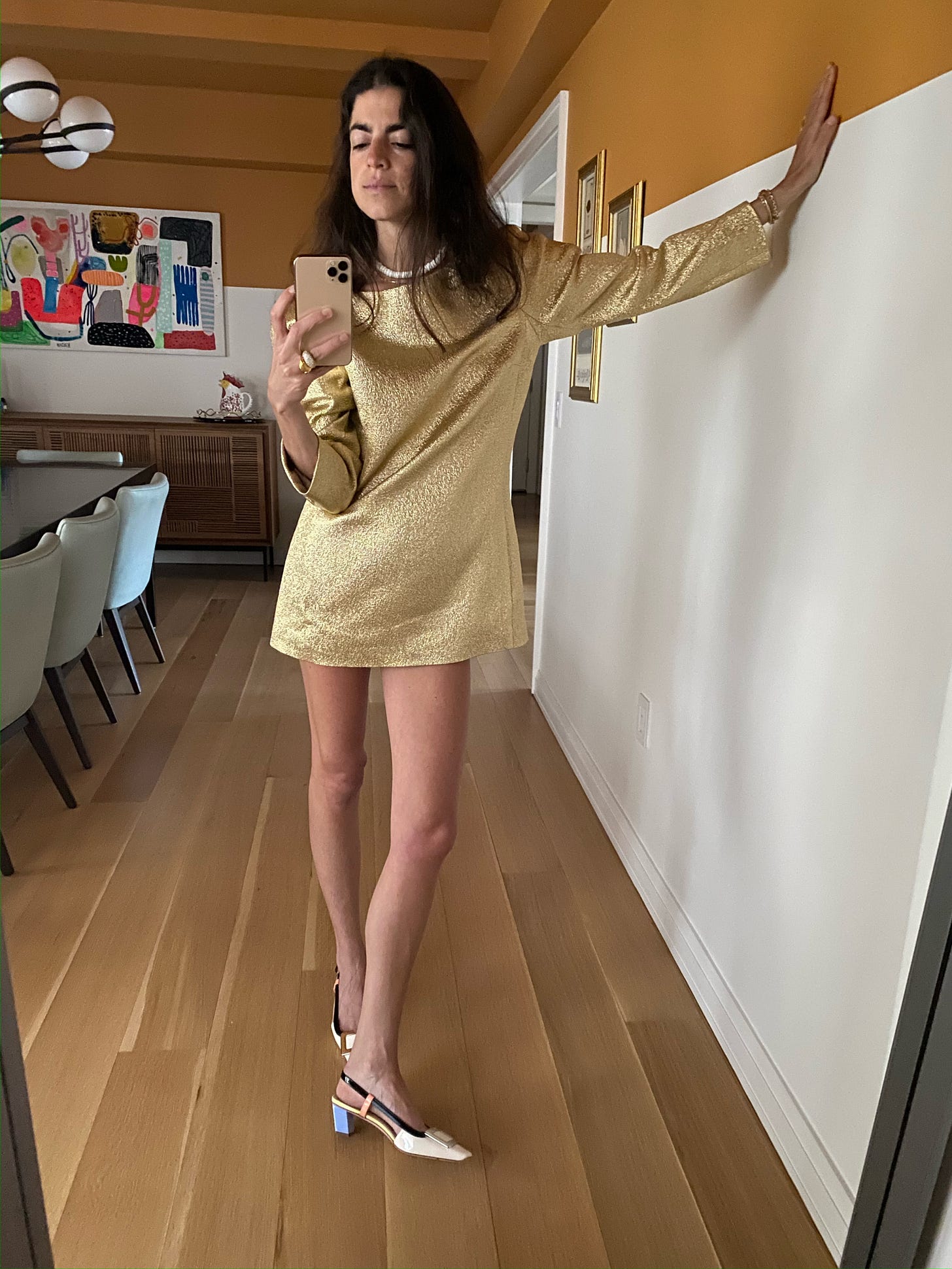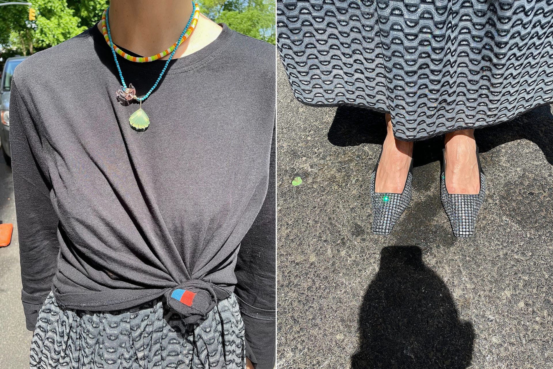 The trick with the leggings is to aim for a lightweight pair (mine are from Manola, on sale rn for $42) so that you don’t shvitz too much in the thigh area, and to that point, by the way, this is a great chafing solve! For the shoes I’d recommend either a slingback (like these) or open-toe mules (the pictured are Bettina Vermillon x Emili Sindlev; these are from Asos) so that your ankles can display their sex appeal.