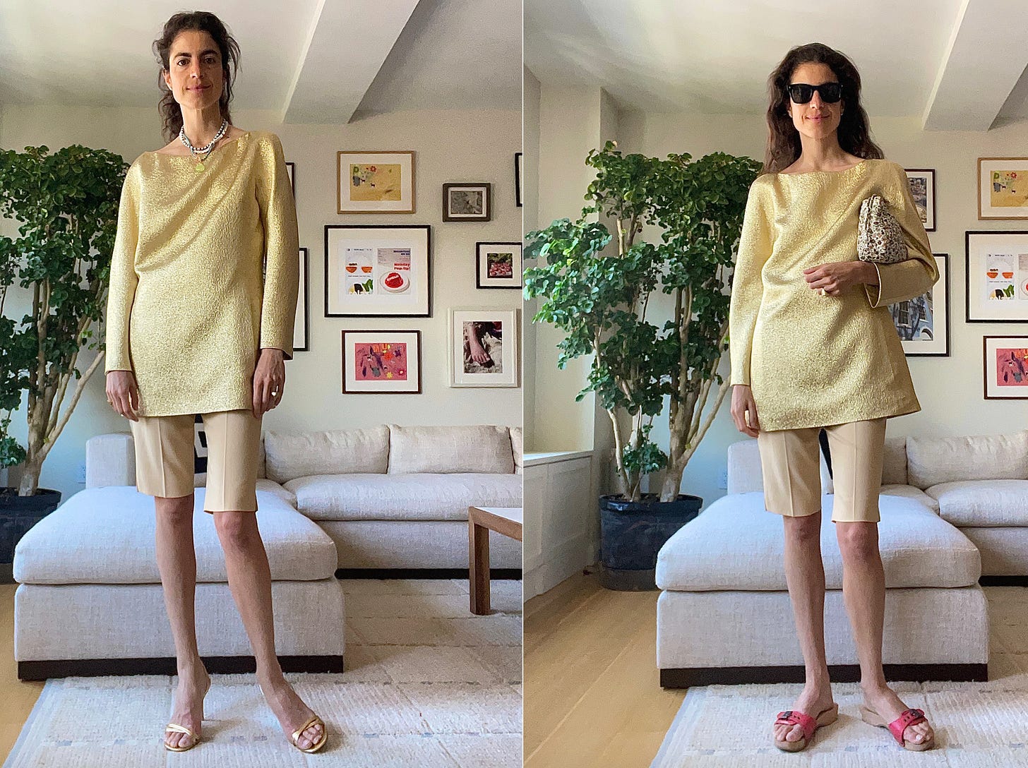 You’ll notice I didn’t just slap a different kind of necklace onto my chest or change my shoes from sandals to loafers or the reverse — sometimes these solutions are absolutely enough (in particular for the bustiered dress, which is such a statement in its own right), but for this go, I’ve tried to lean on otherwise garments in my closet to reimagine their wear-cases. So: