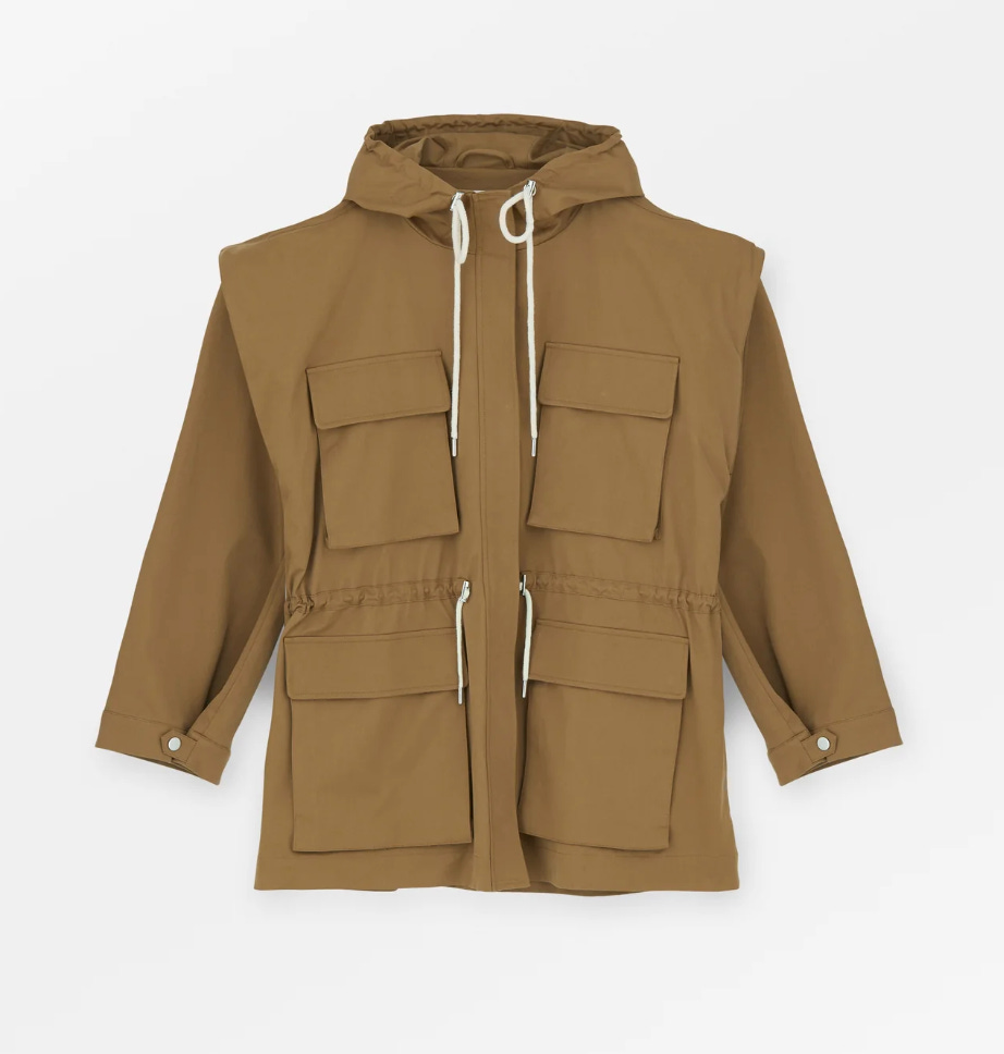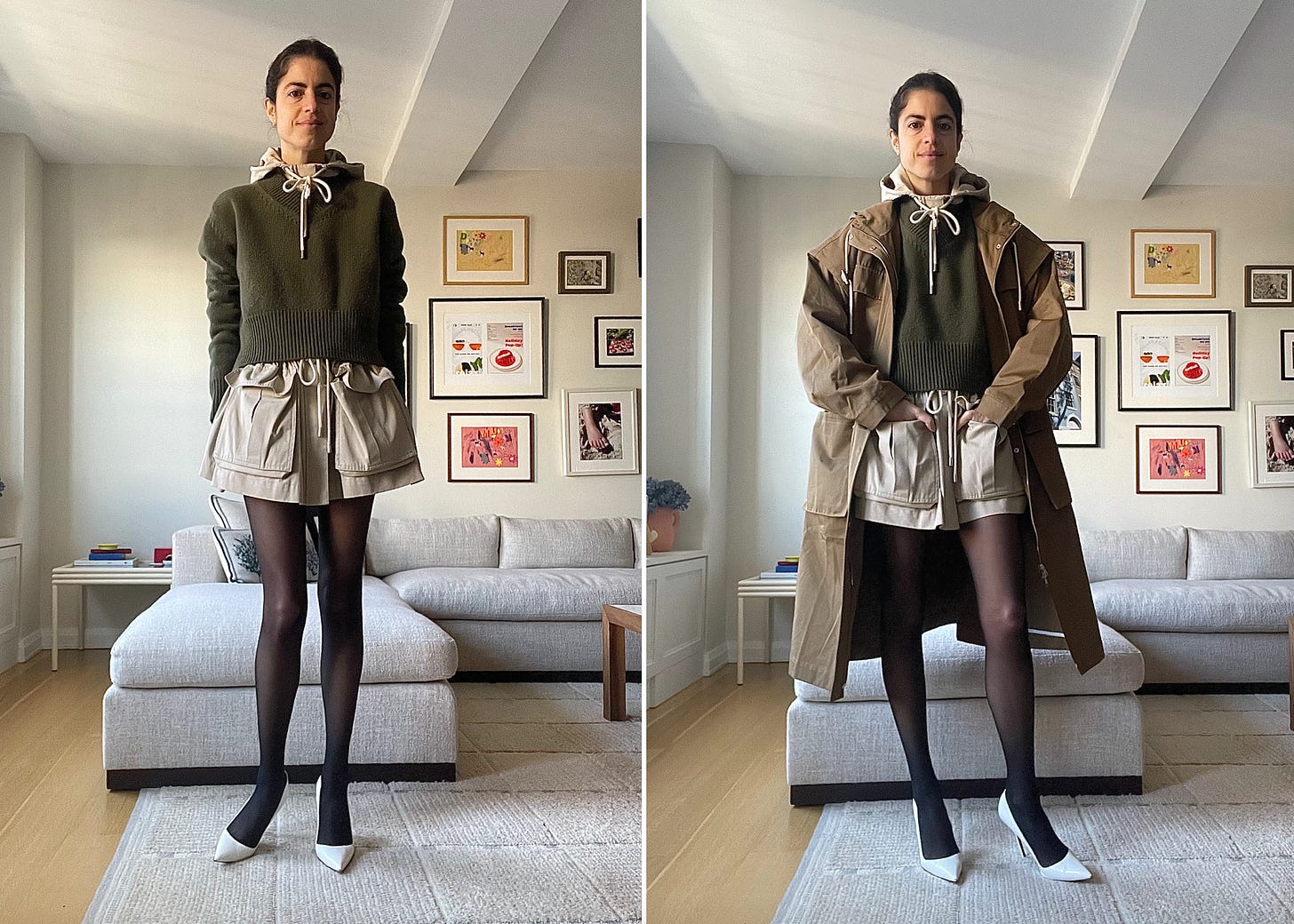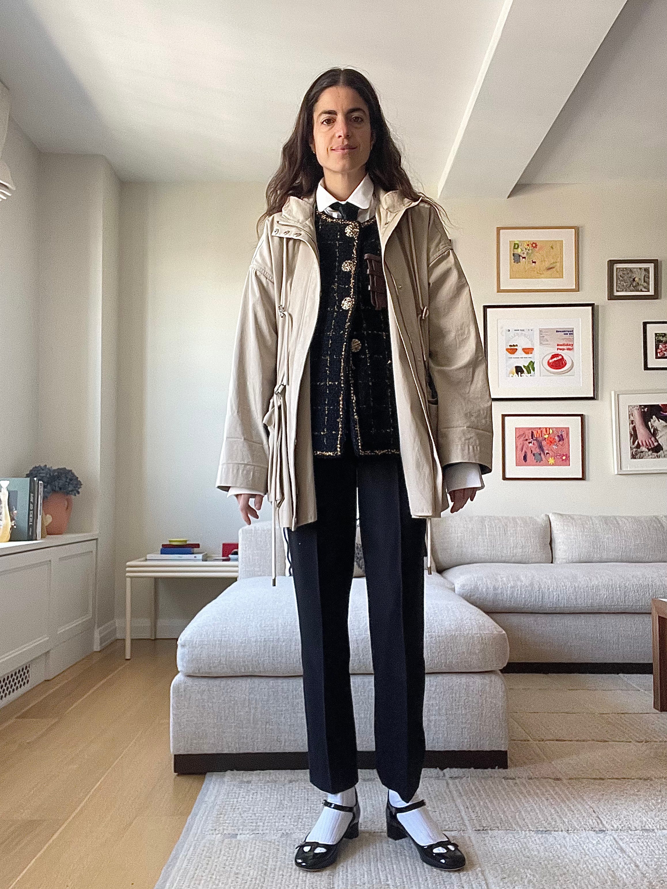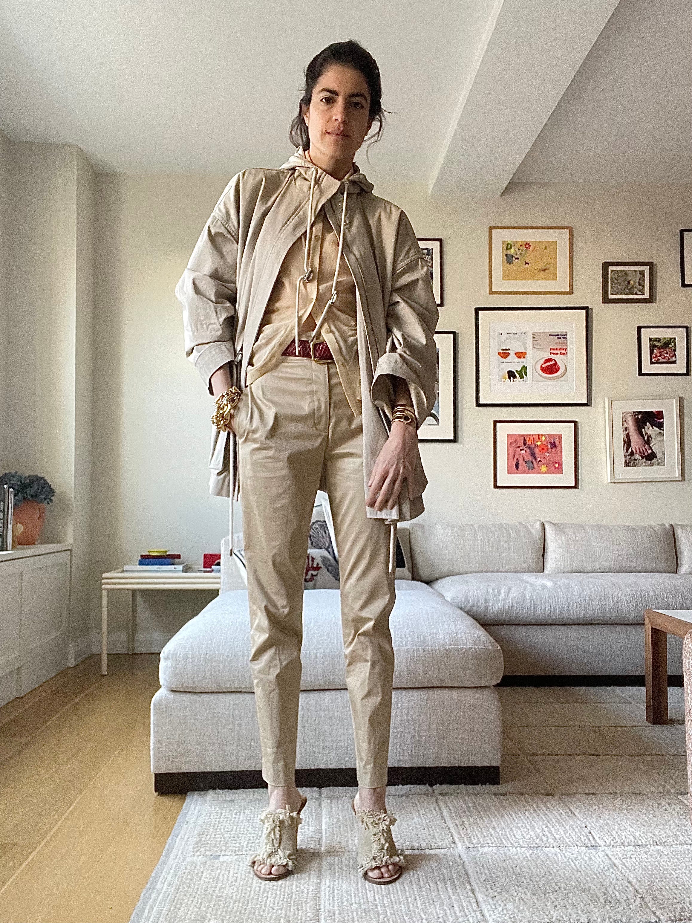 A trench coat is the most common answer to the question of what kind of jacket one should wear through the spring, but a cotton anorak (known otherwise as “a shell parka”) that is trench-y in material (cotton twill, often water resistant), a bit more informal in silhouette (soft shoulders, oversize arms), and most practically, hooded, might actually be the ideal thing to put over your outfit this time of year.
