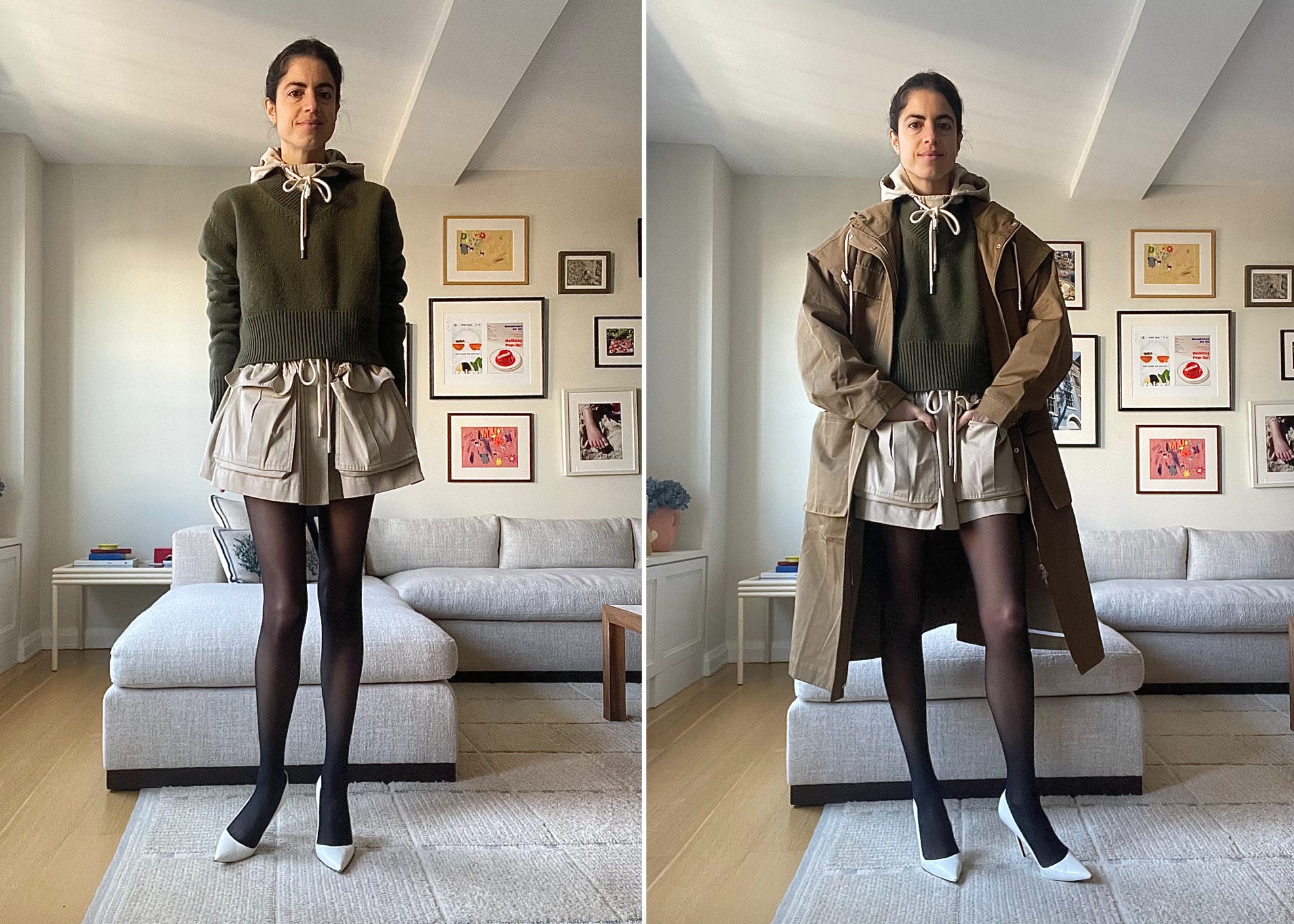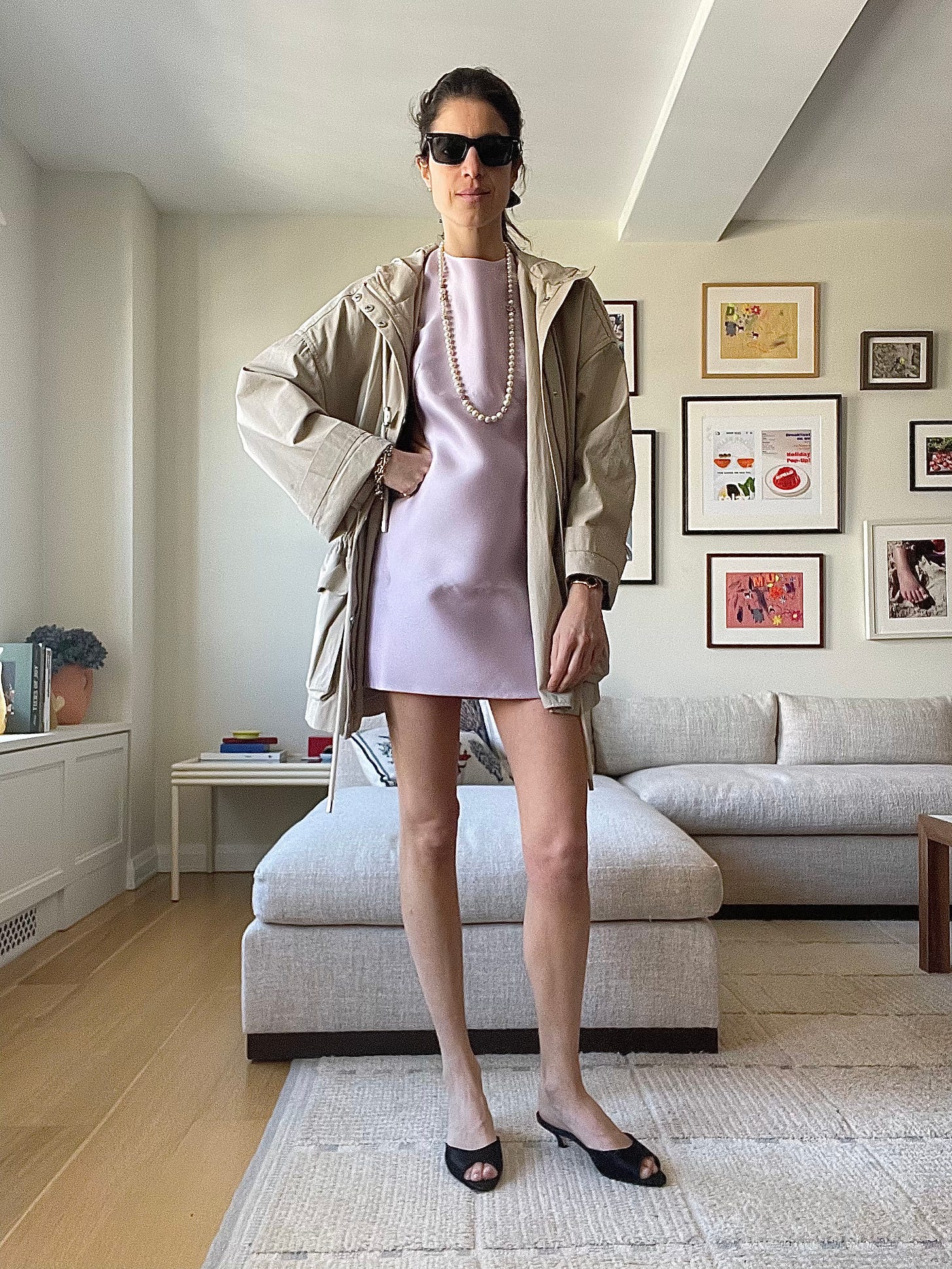 In the end, though, I have to say, the best way to wear a shell parka is like the afterthought it is, as a plain but inexplicably divine topping for an inconvenient outfit.