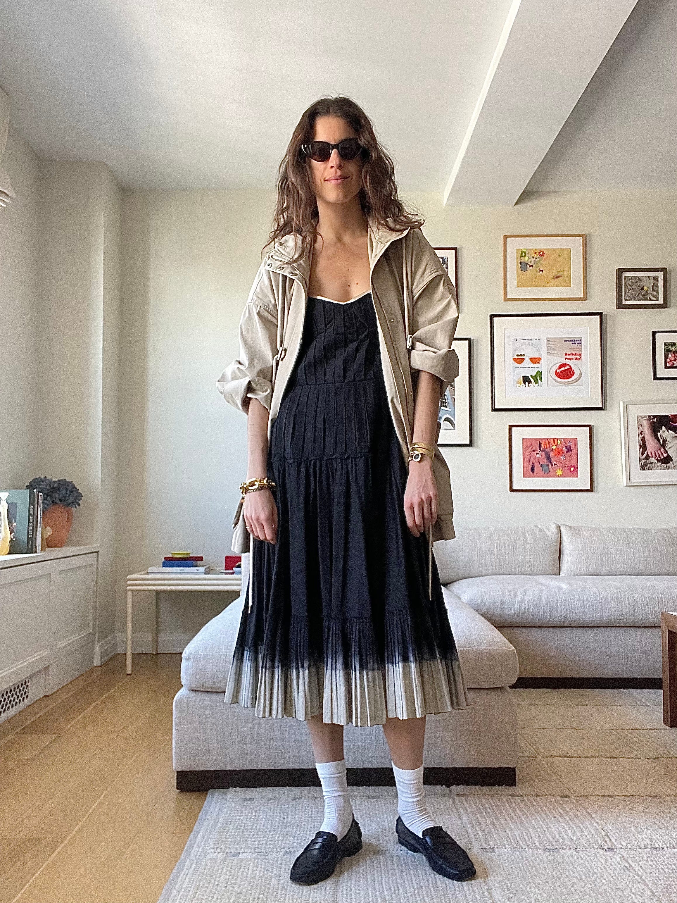 Nafsika Skourti dress, Tod’s loafers from The Real Real. I think thesethesethese are them!