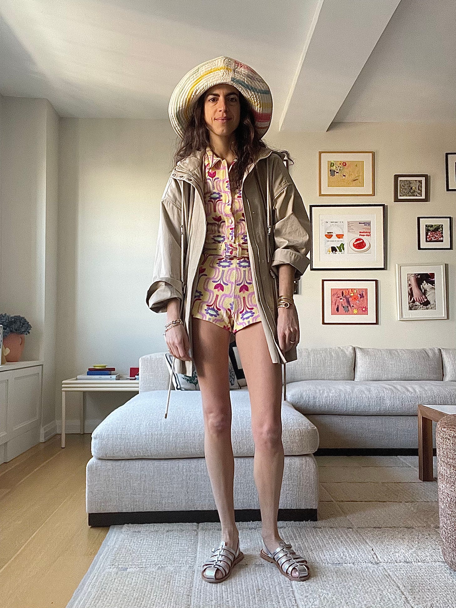 It’s like if you misread the invite and thought you were going on a real safari but actually ended up in midtown Manhattan — the (corporate) concrete jungle. &Daughter sweater, LMND shirt, Doen shorts, Soeur sandals