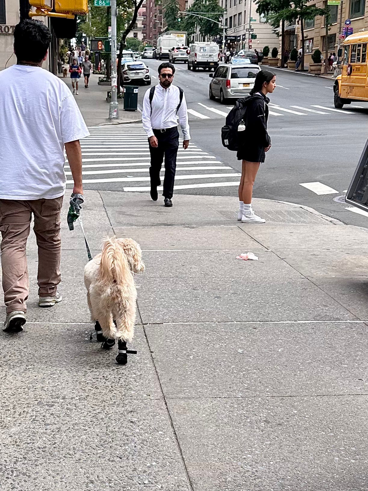 Then you’ve got your neighborhood school moms shuttling kids to and from schools on the Avenue (many dressed in at least one designer patch), which I appreciate amid the sea of leggings for such an early morning hustle.