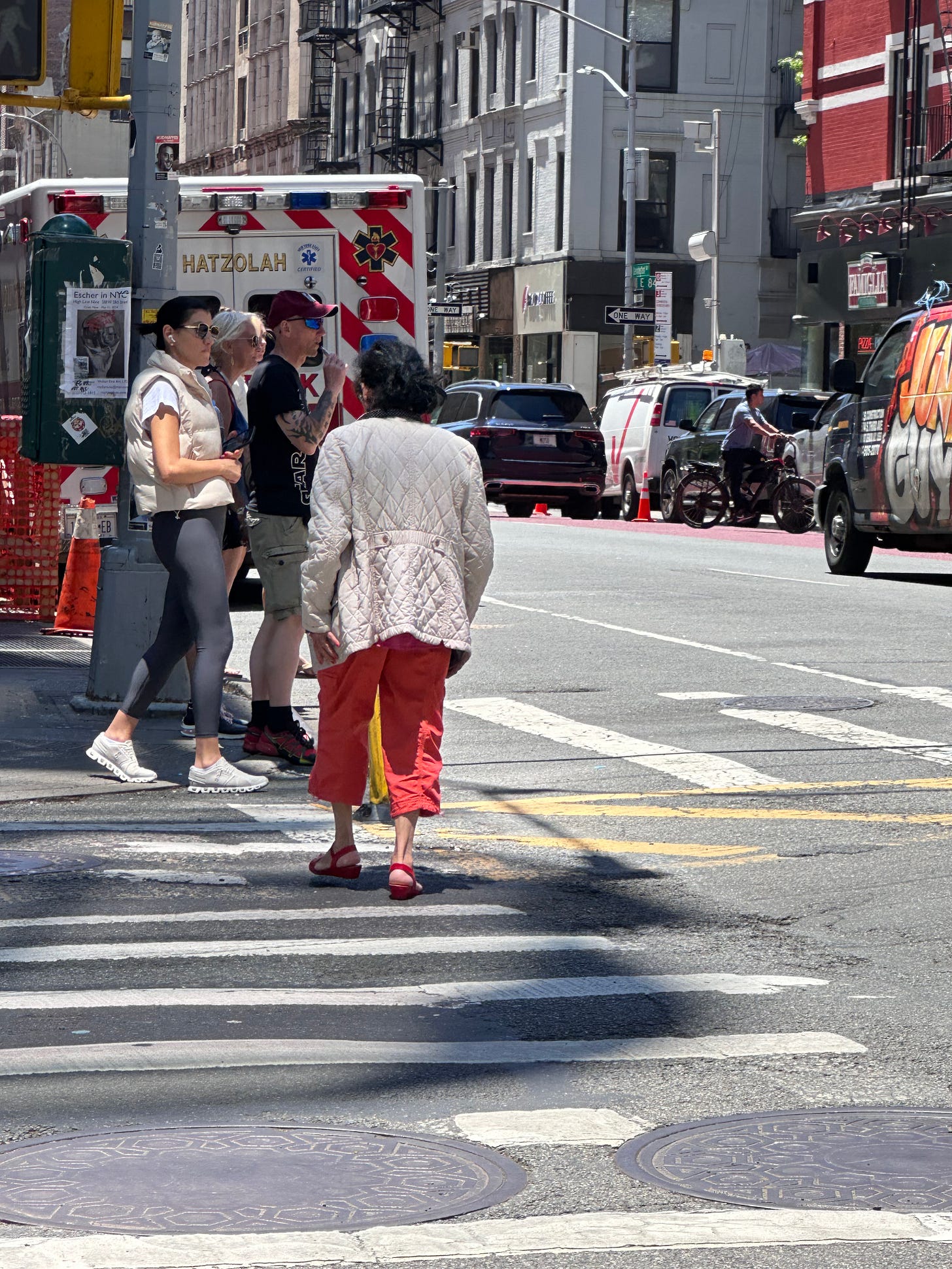 I love this edition. I know you will get to a more diverse neighborhood; there were no black or brown people here! But I really appreciated your appreciation of older people, who often feel unseen. You see them and all that they are doing with their clothing to speak in the world.