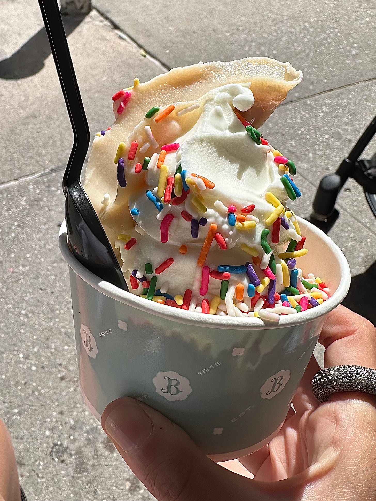 I mean, you can walk by at 8am, which often I do on my way home from school drop off, and there is a 50% chance you’ll see someone eating it. It’s an indulgent breakfast choice but not a crazy one.