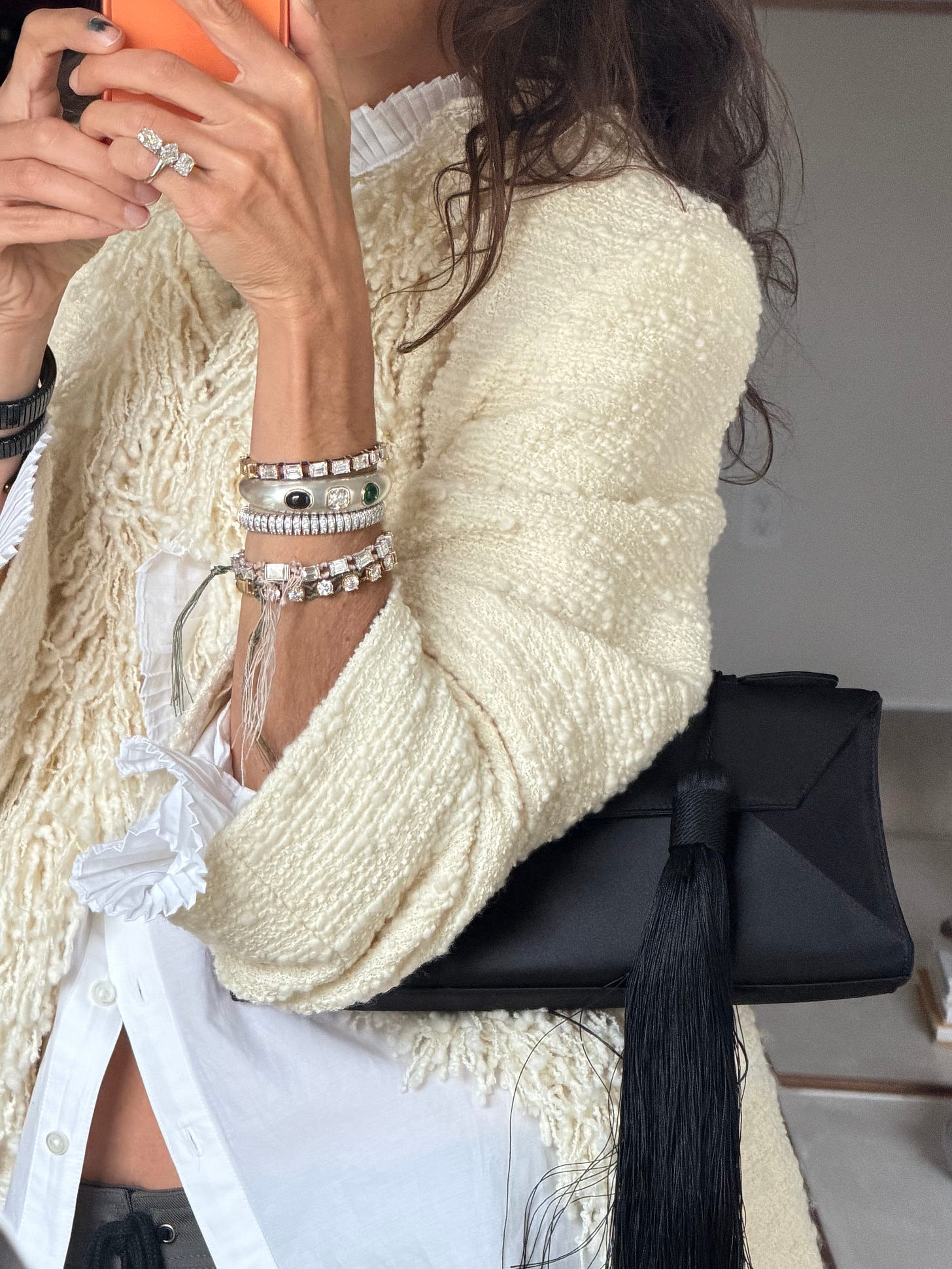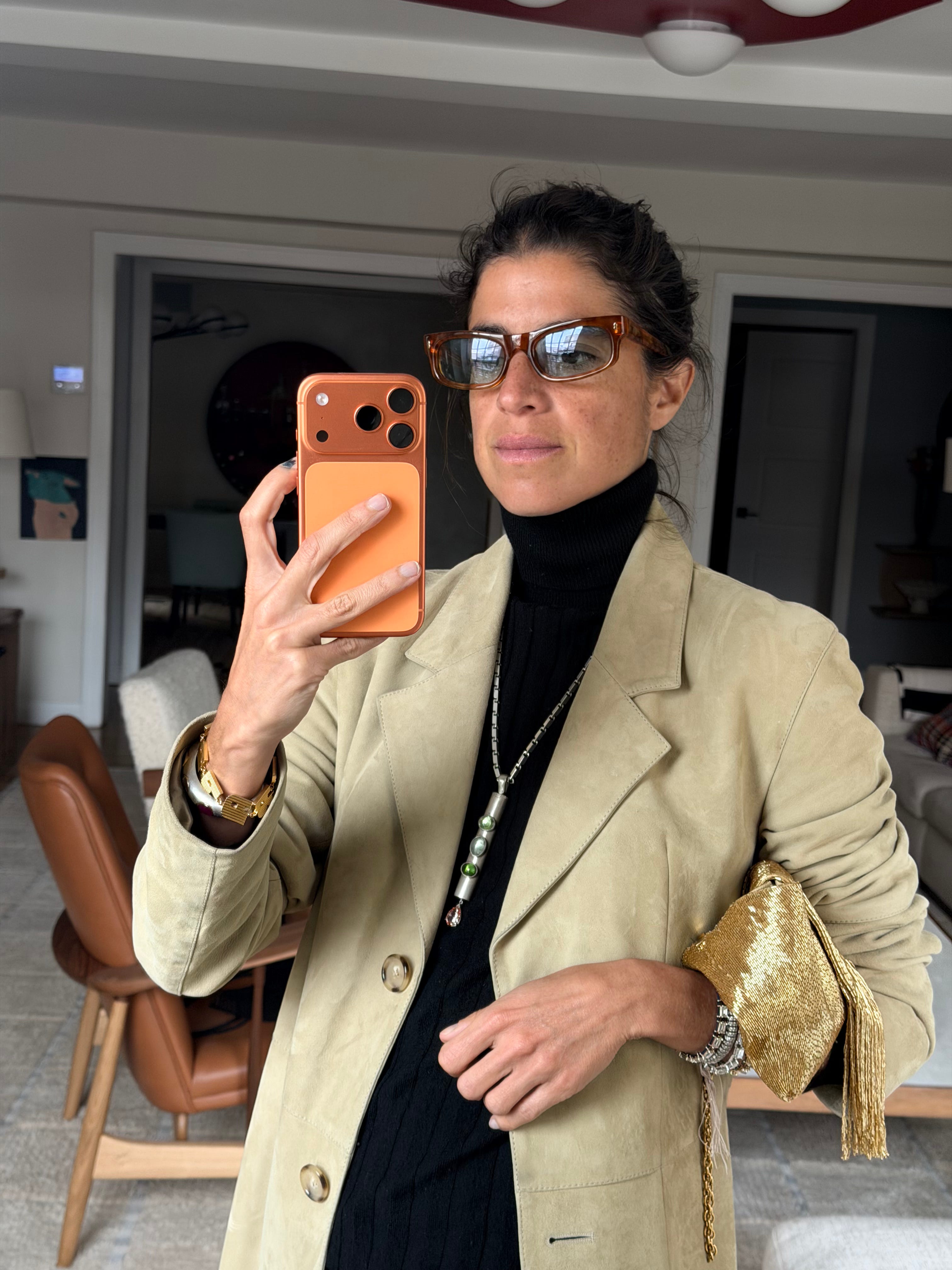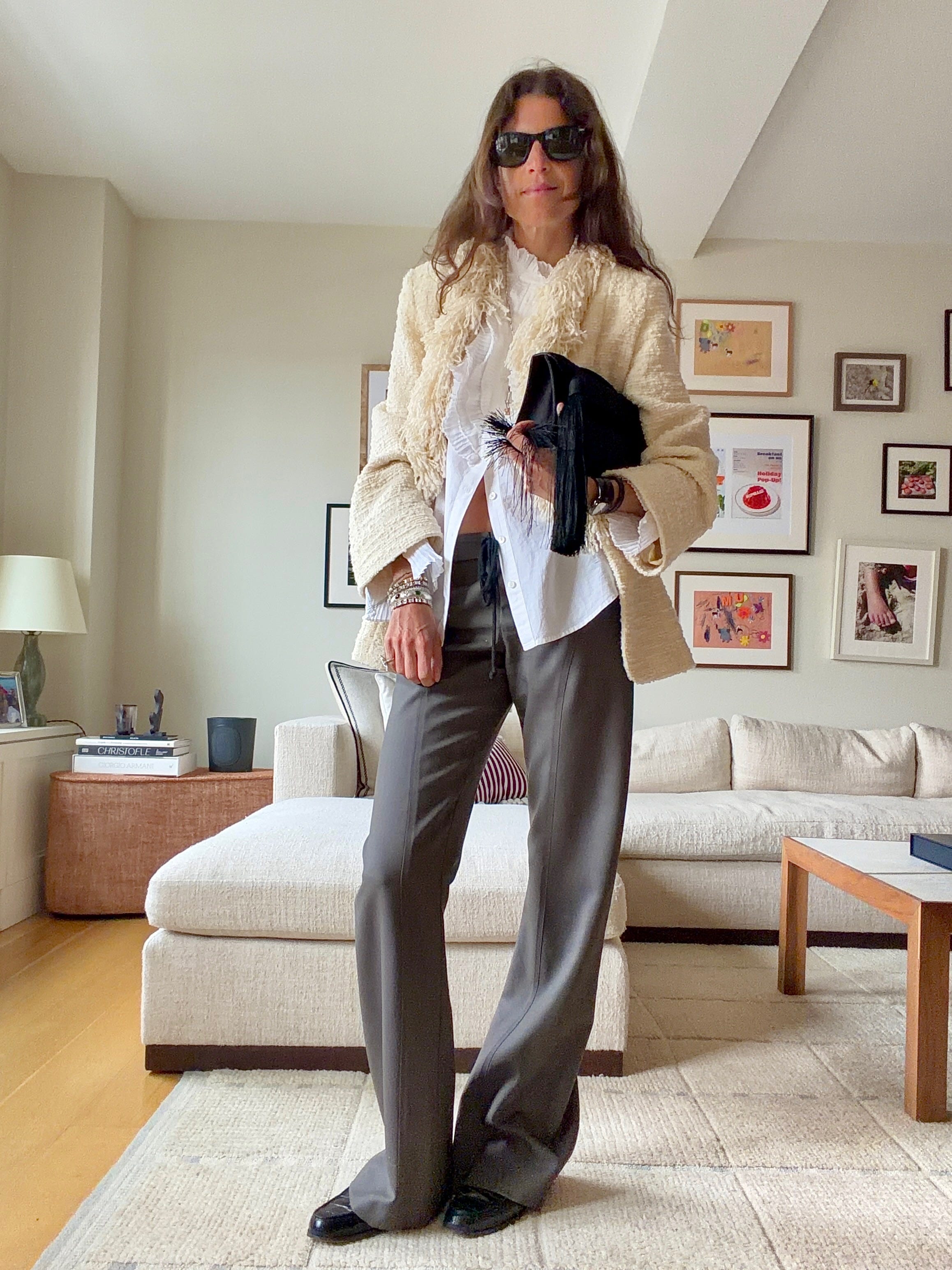Really might be alone on this one, but I trust the intuitive hits when they land and lately, nothing feels so complimentary to an outfit (particularly one that is relatively masculine, or robotically streamlined,) as reframing where I put my necklace.
