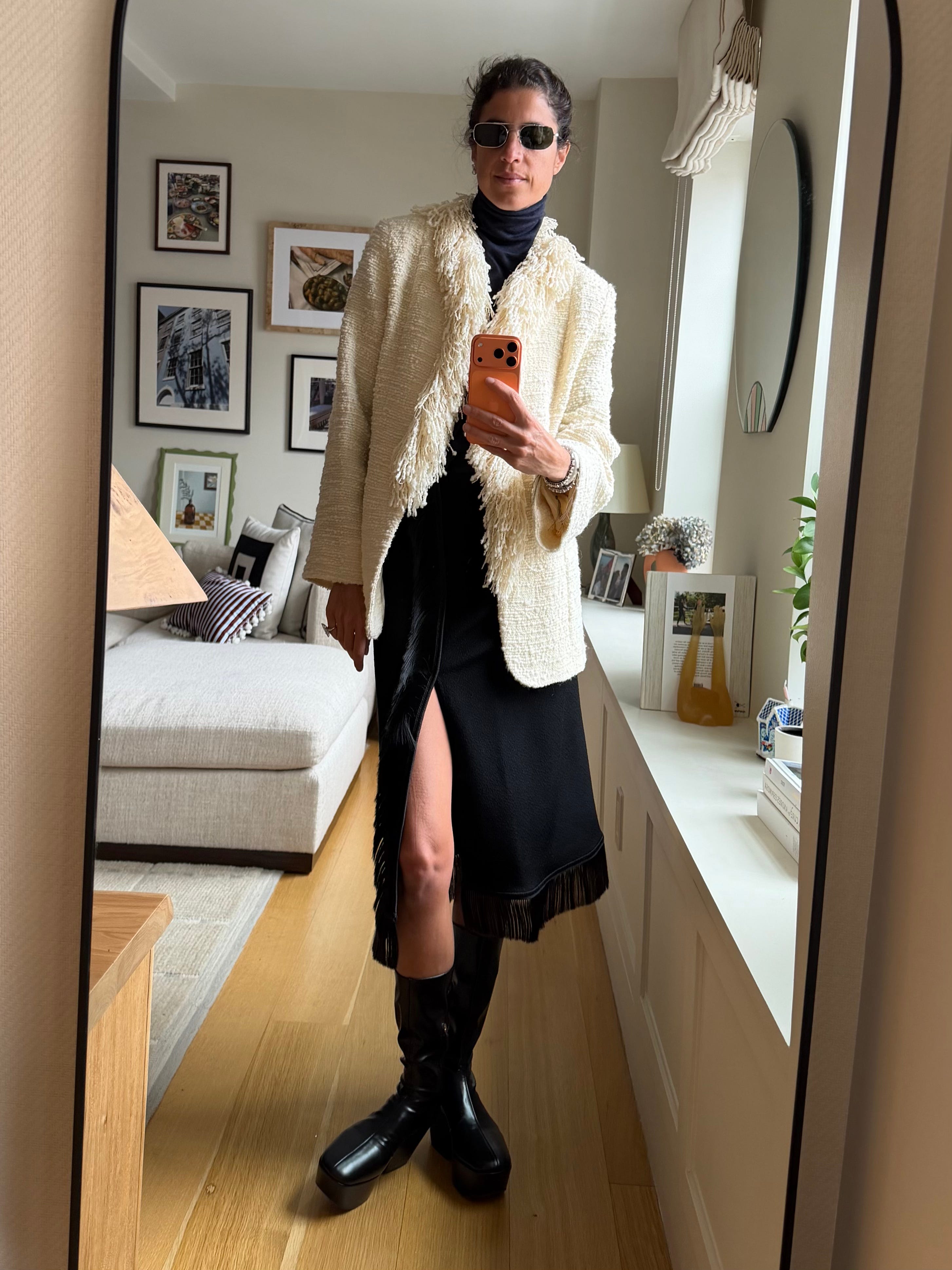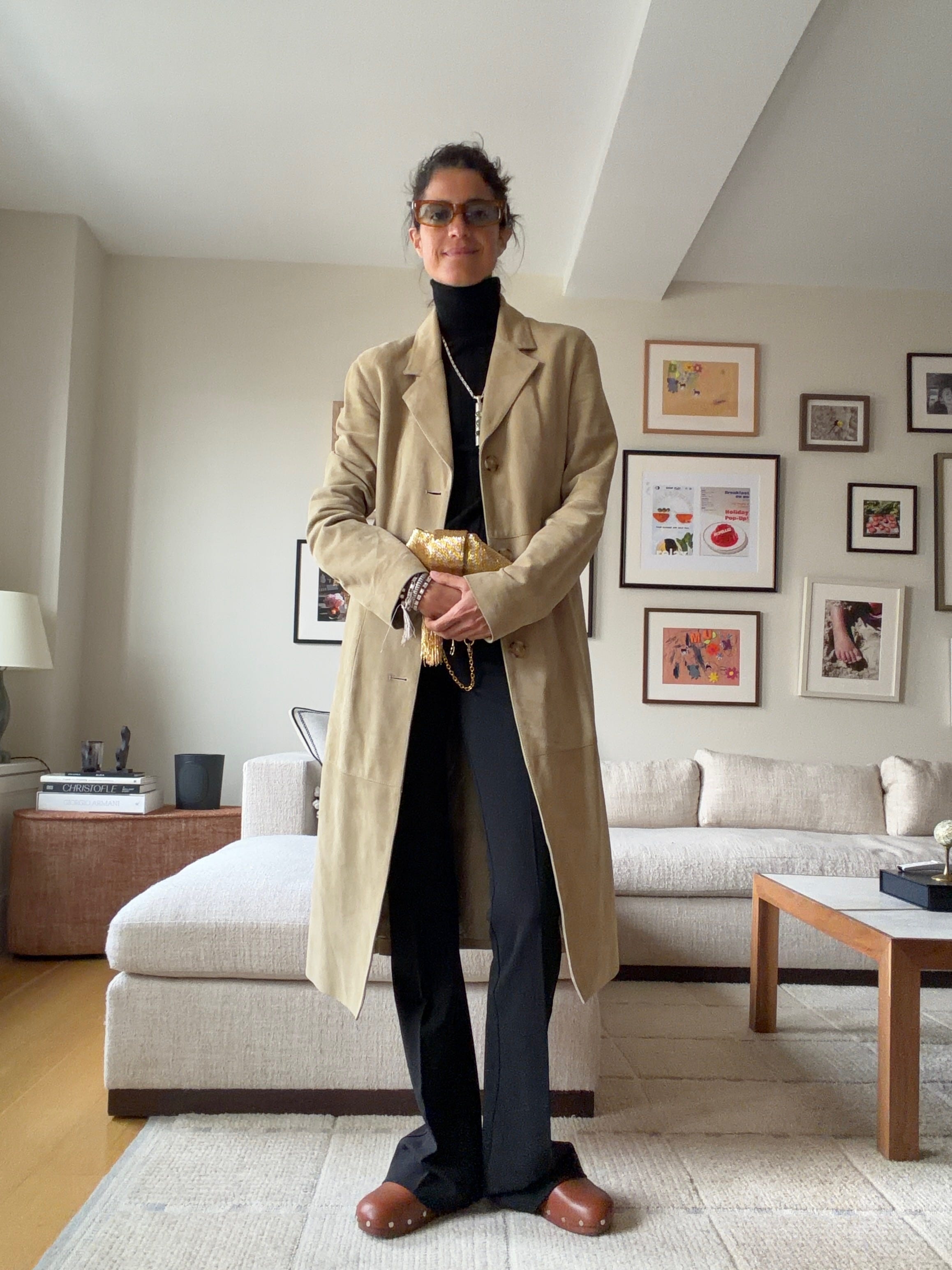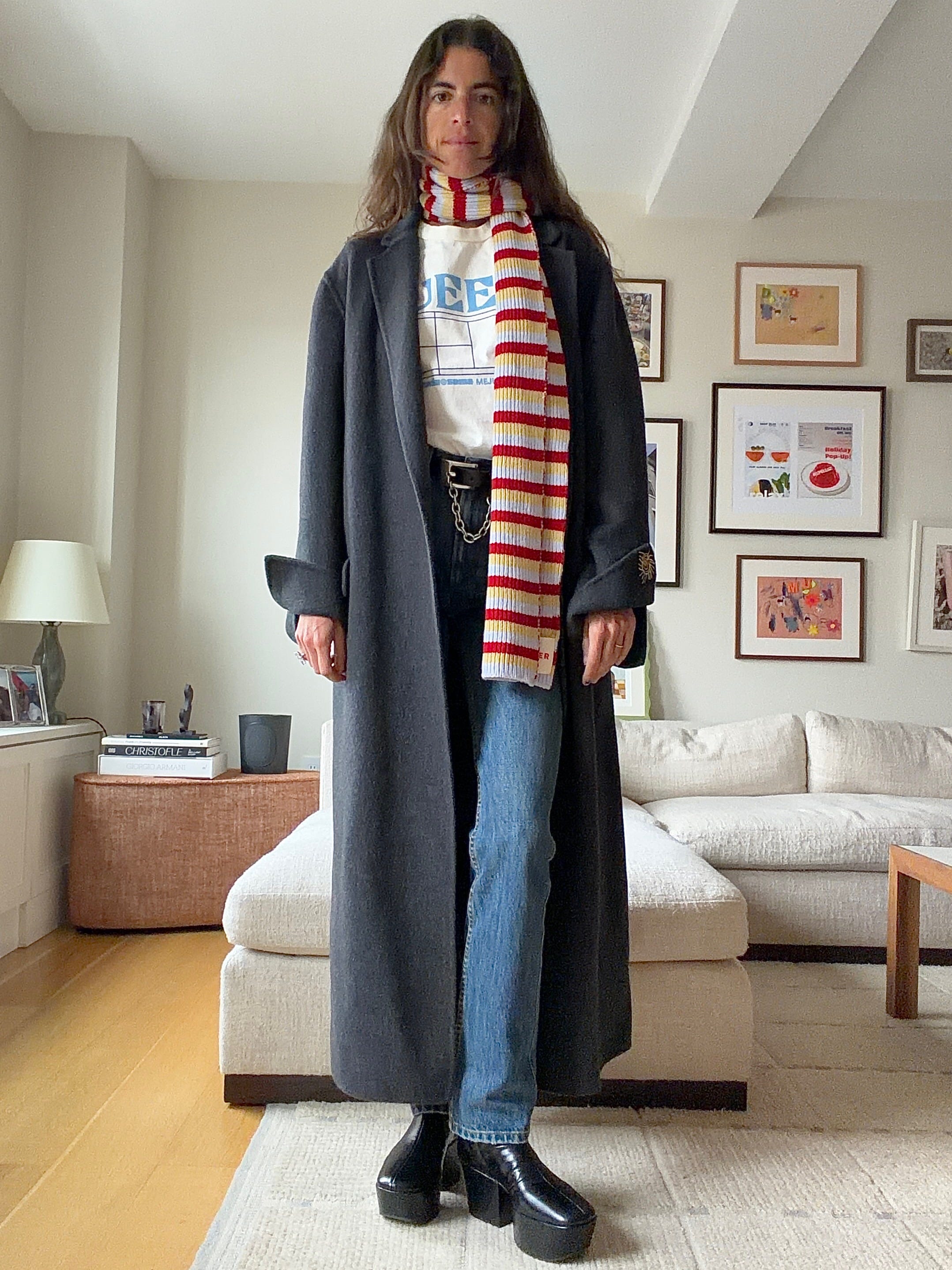 A long fall jacket as part of the outfit —