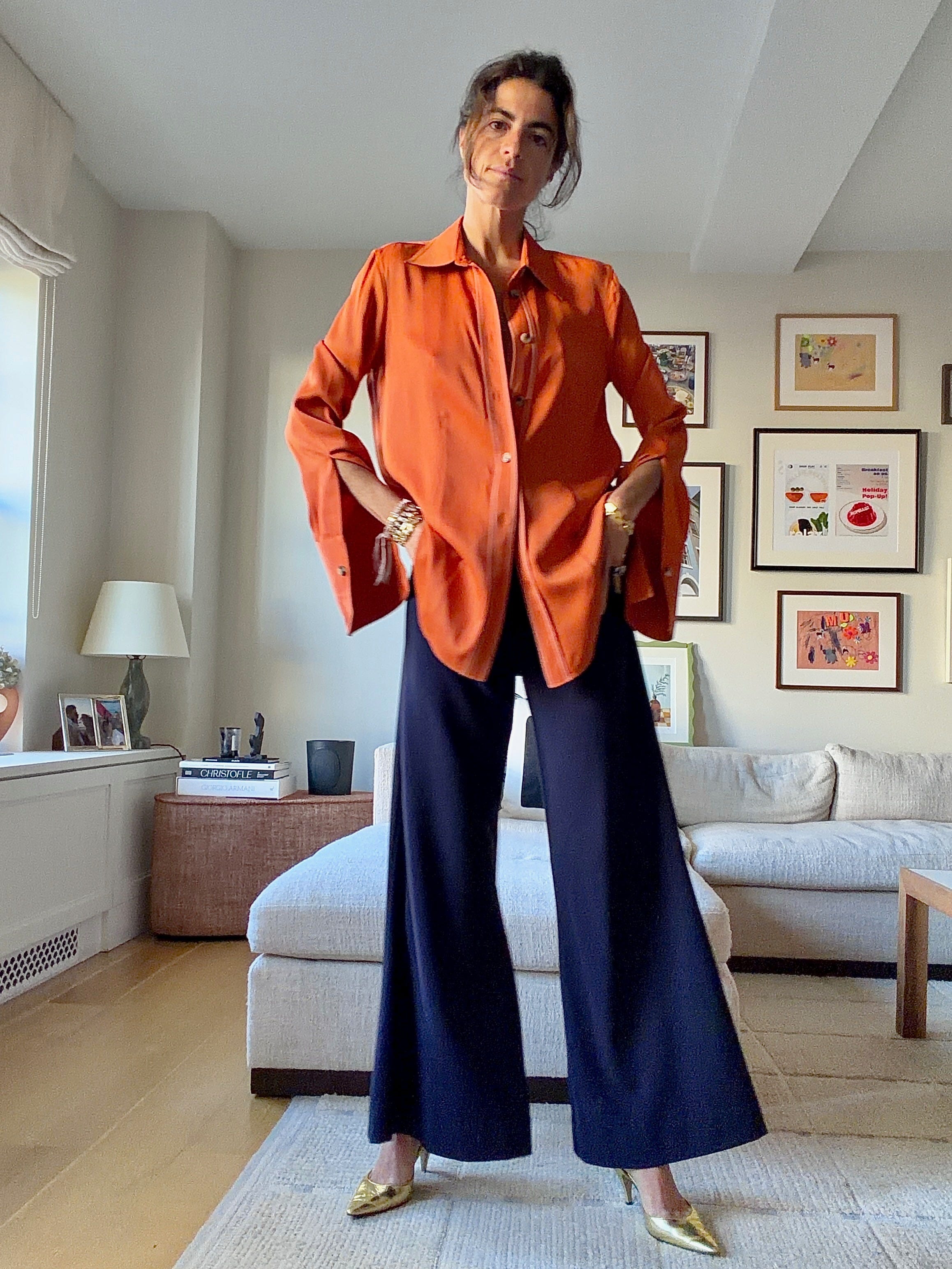 You know how when you shine a mirror at the light it reflects more light making the scene you’re in doubly bright? Gold shoes do the same thing to an outfit. My favorite use case for them is as paired with a completely black look. While nearly any light color shoe, including white, will project a quality of levity for the outfit, gold maintains the added value of bringing some funk. Sass. An ‘I’m here to dance’ energy.